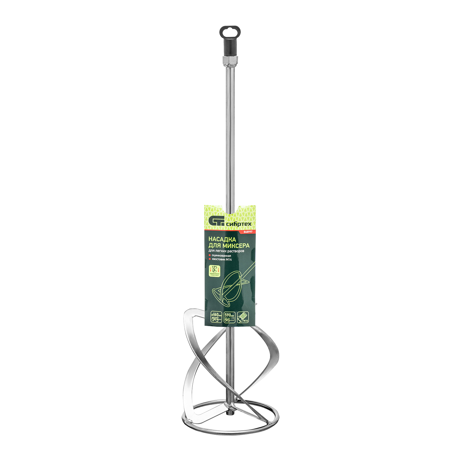 Насадка для миксера, для легких растворов, 160 х 590 мм, оцинкованная, хвостовик резьба М14 Сибртех в Челябинске