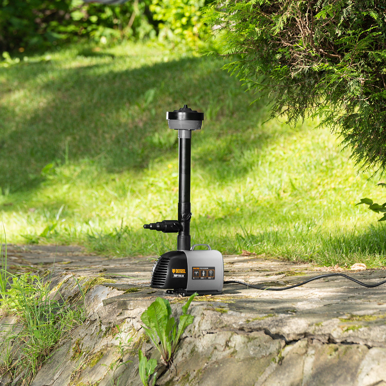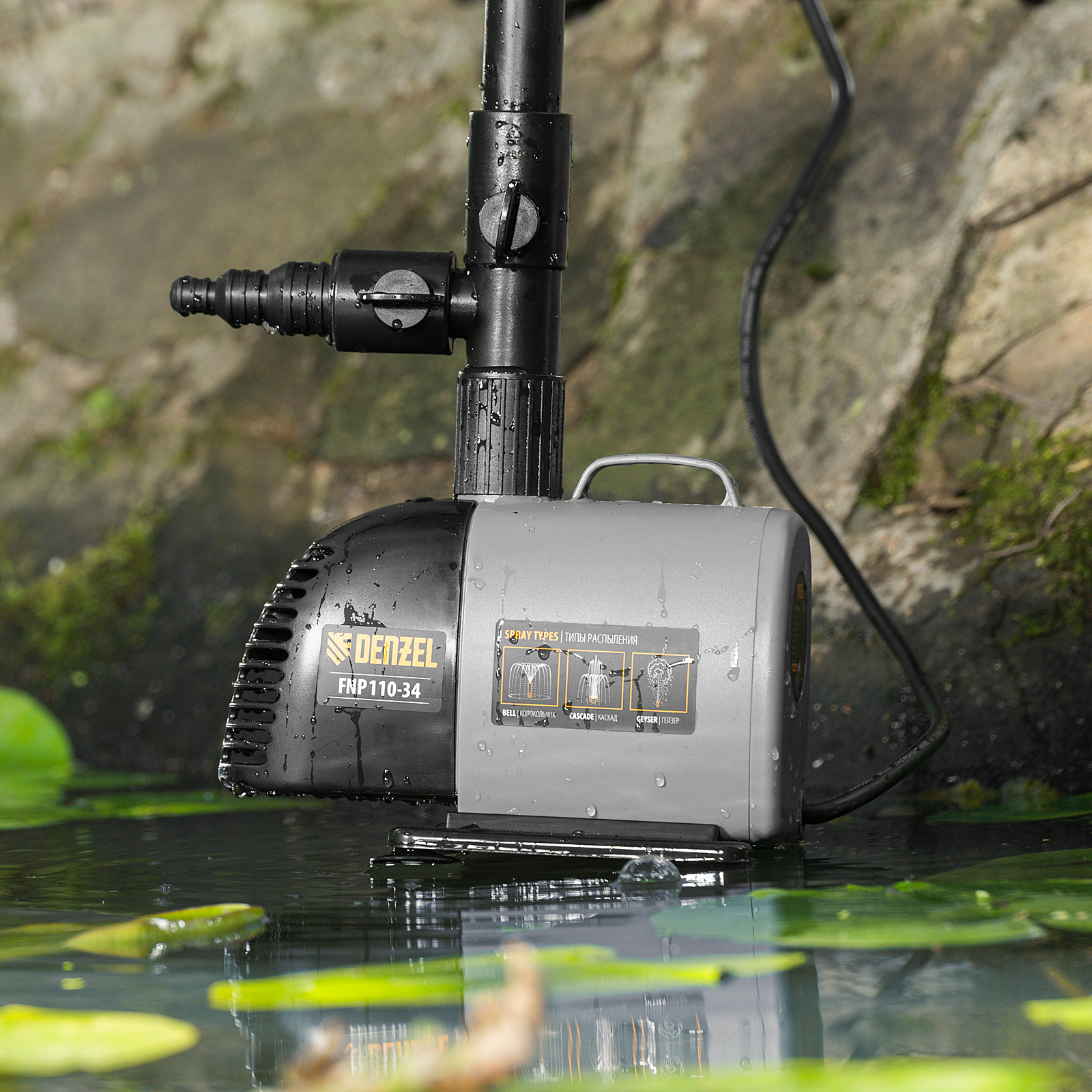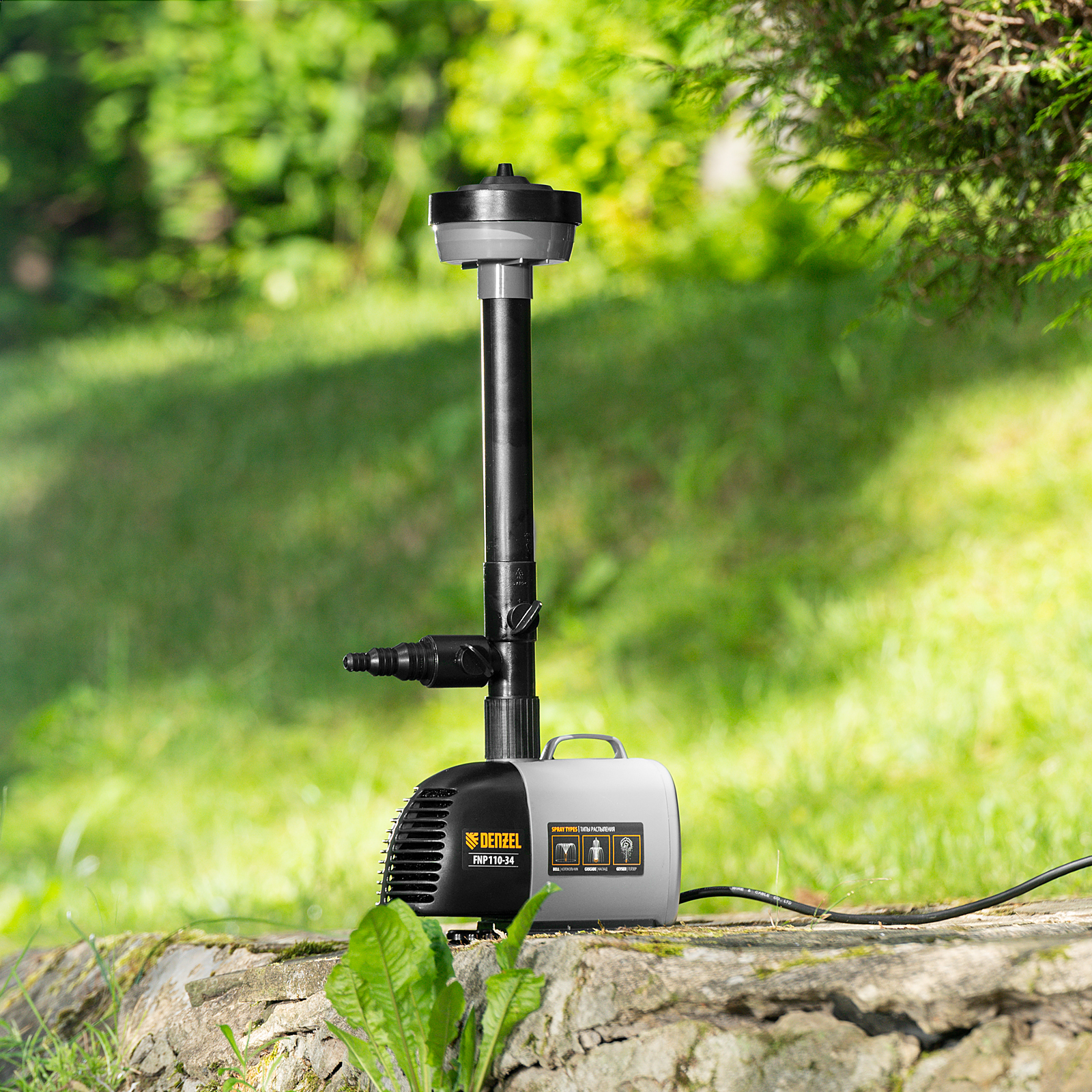 Насос фонтанный FNP110-34, 112 Вт, подъем 3,4 м, 3400 л/ч, колокольчик/каскад/гейзер Denzel в Челябинске