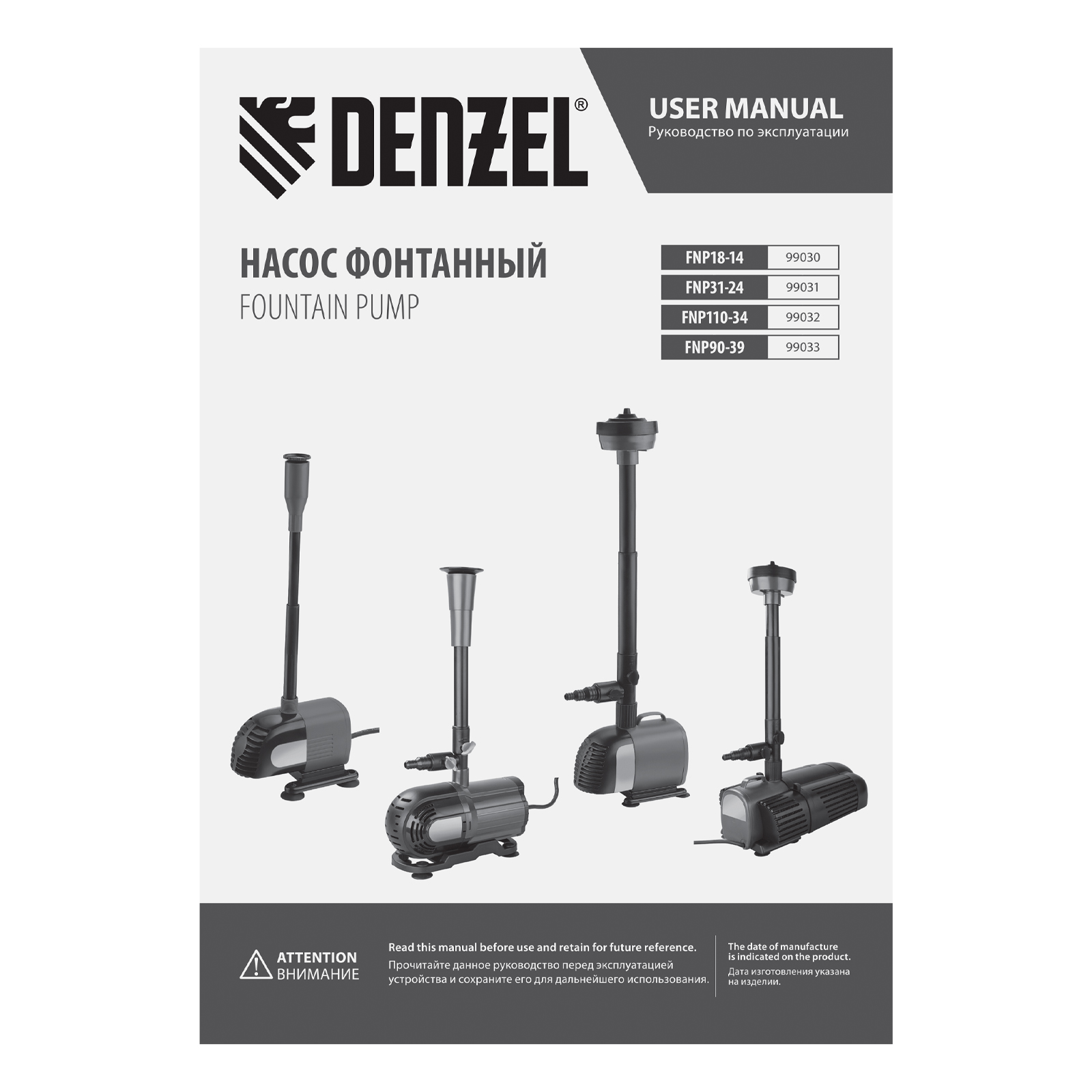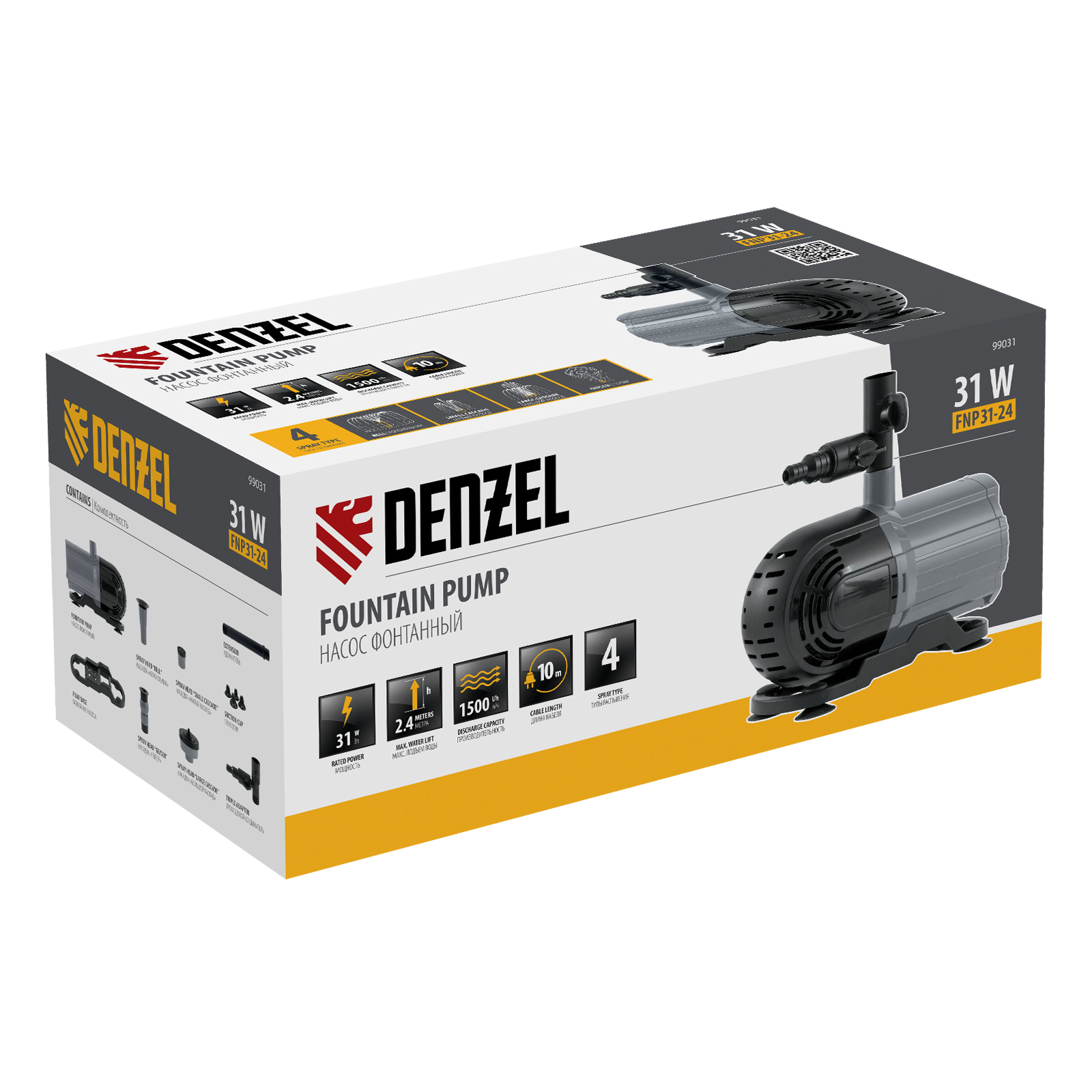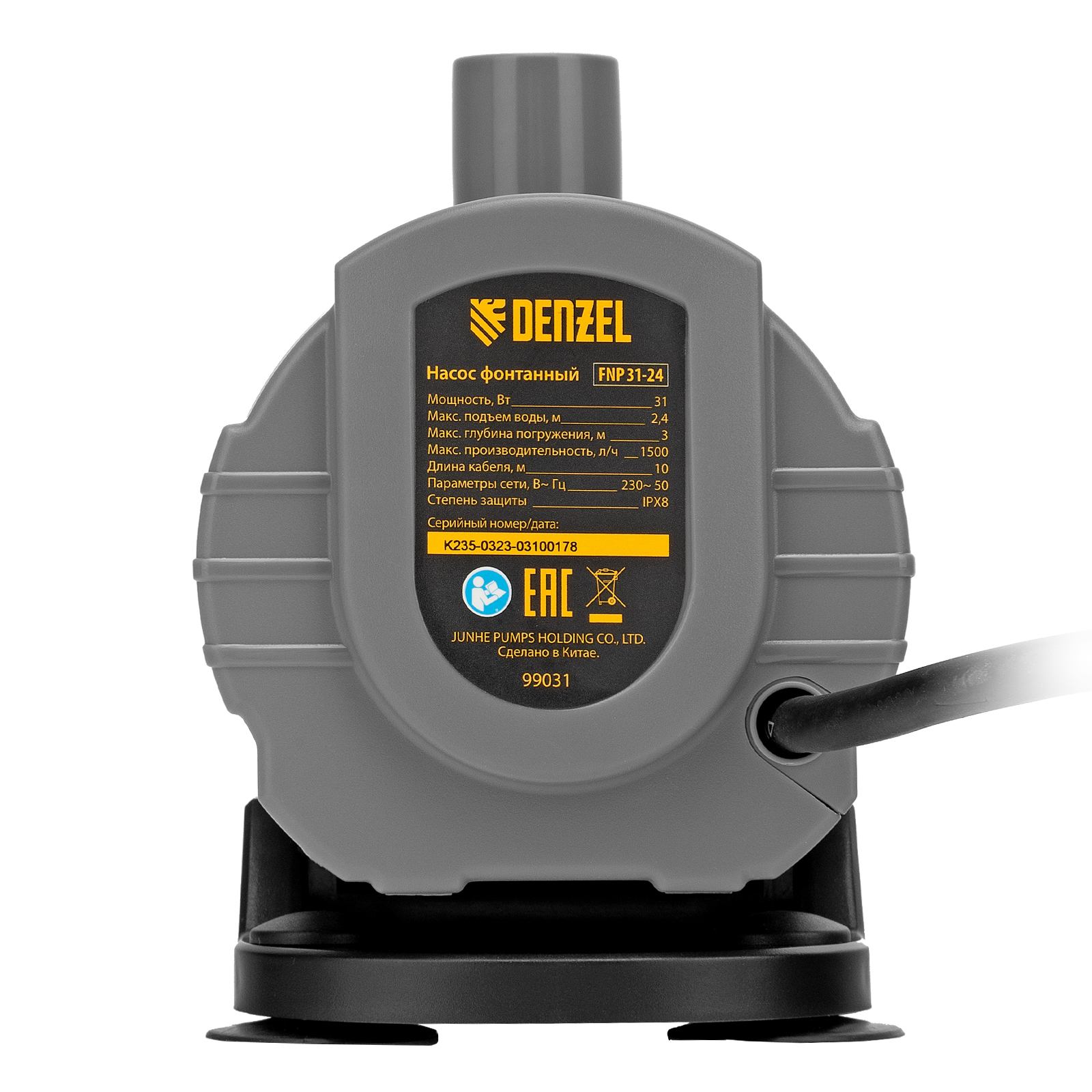 Насос фонтанный FNP31-24, 31 Вт, подъем 2,4 м, 1500 л/ч, колокольчик/2 каскада/гейзер Denzel в Челябинске