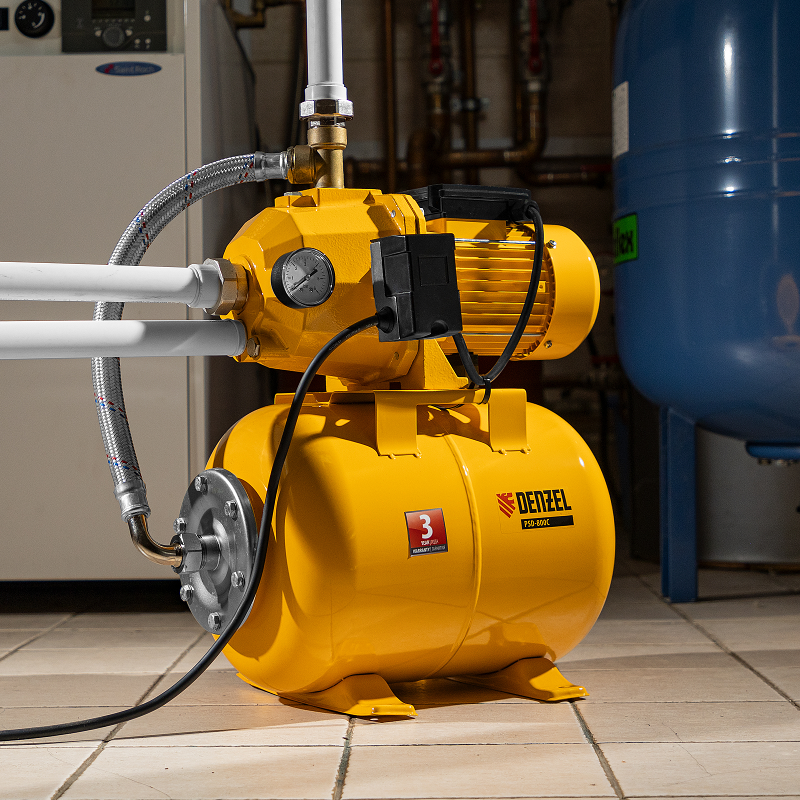 Насосная станция эжекторная PSD800C, 800 Вт, 2400 л/ч, ресивер 24 л, всасывание 20 м Denzel в Челябинске