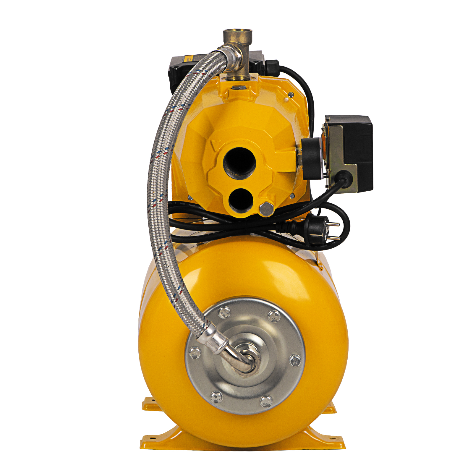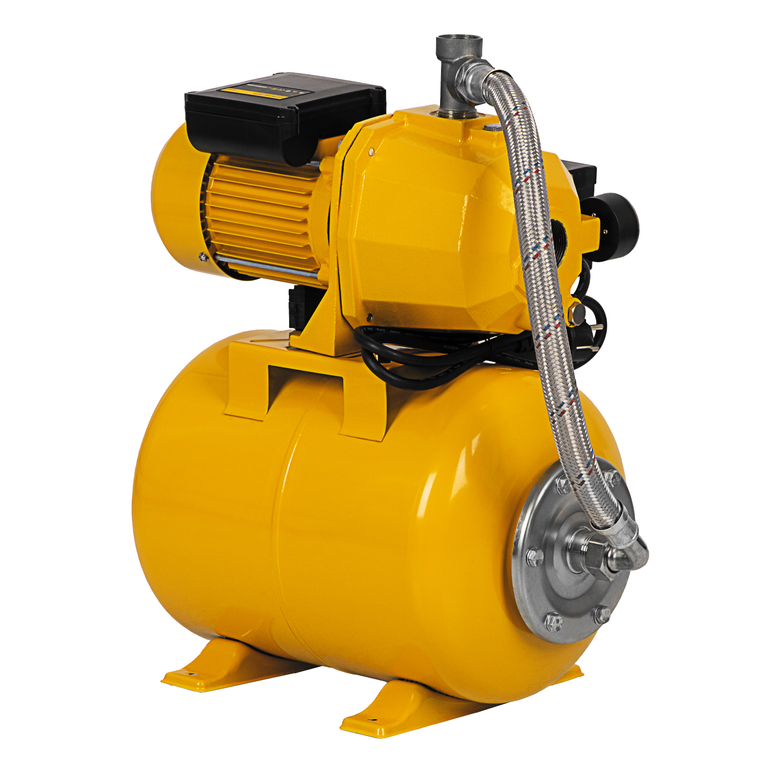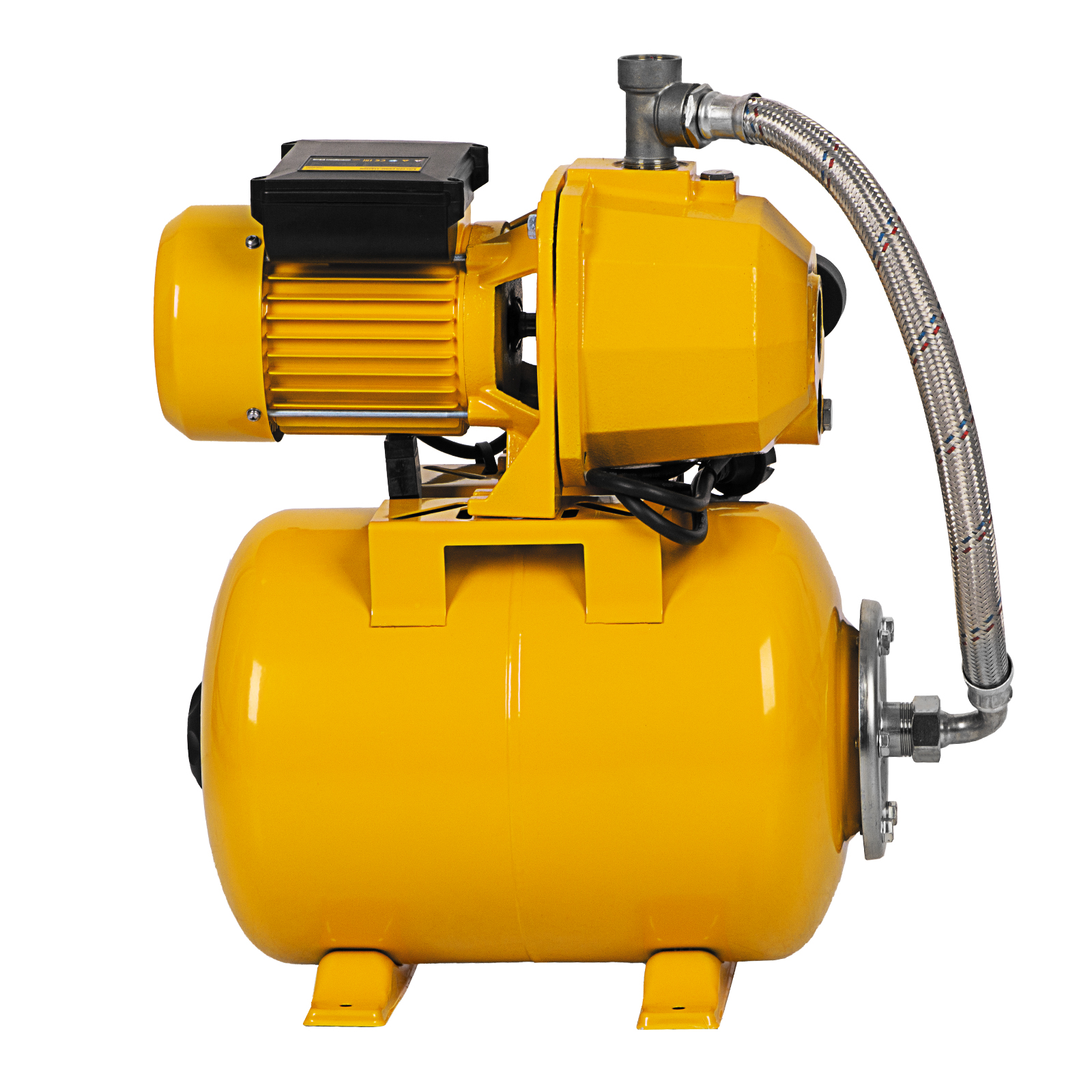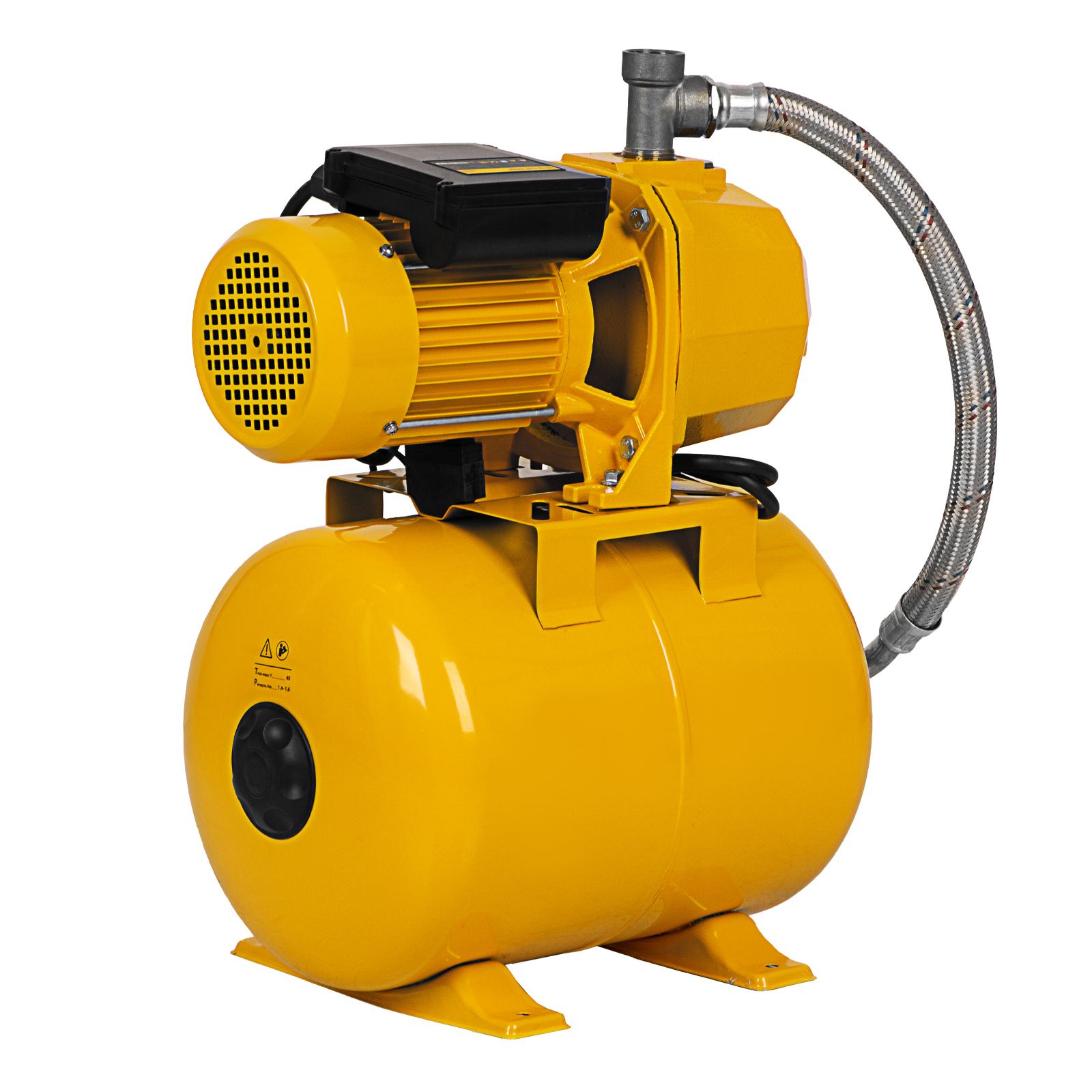 - Объемный ресивер на 24 л — система накопления снижает количество включений двигателя, что снижает энергопотребление и позволяет иметь запас воды на случай отключения электричества.