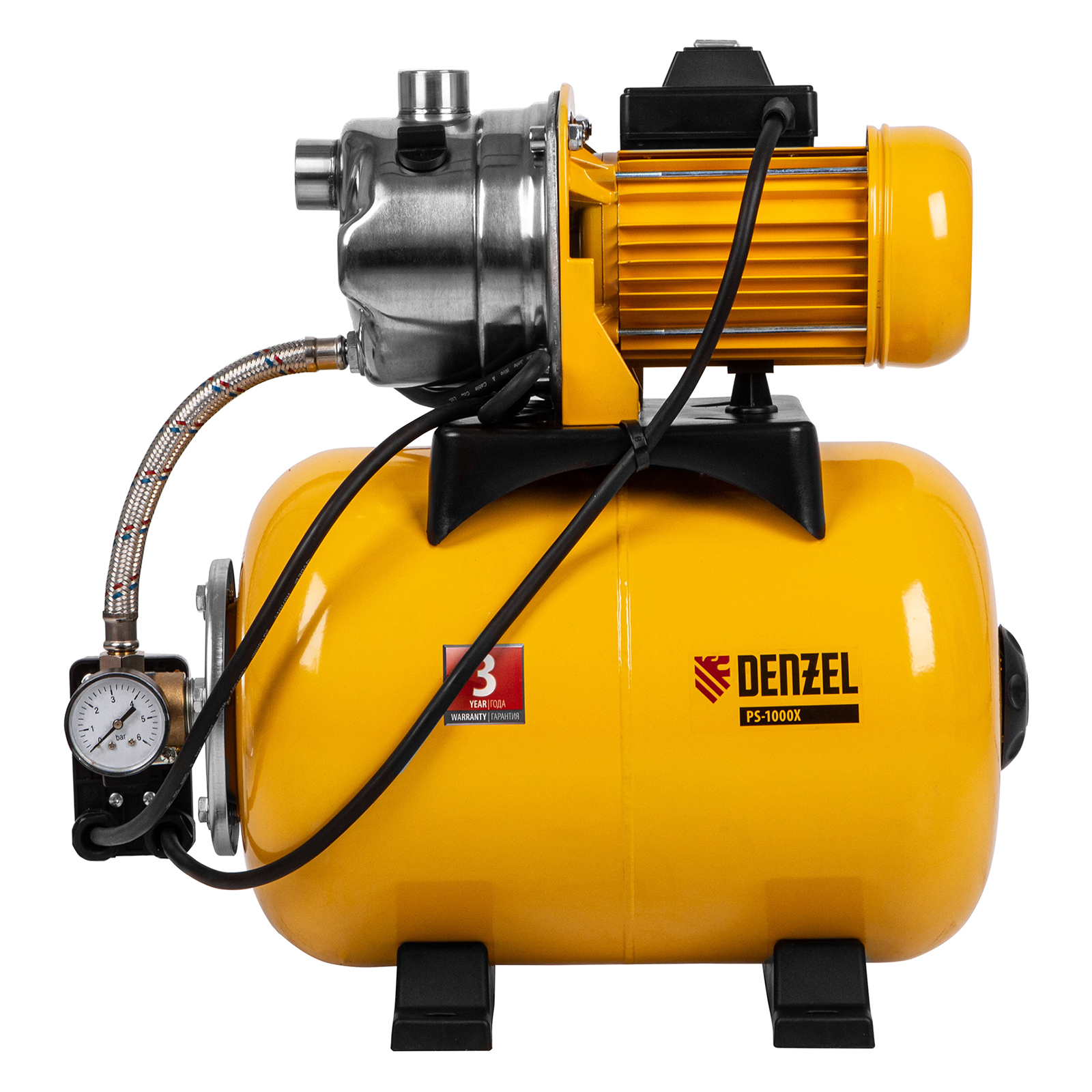 Насосная станция PS1000Х, 1000 Вт, 3500 л/ч, ресивер 24 л, подъем 44 м, нержавейка Denzel в Челябинске