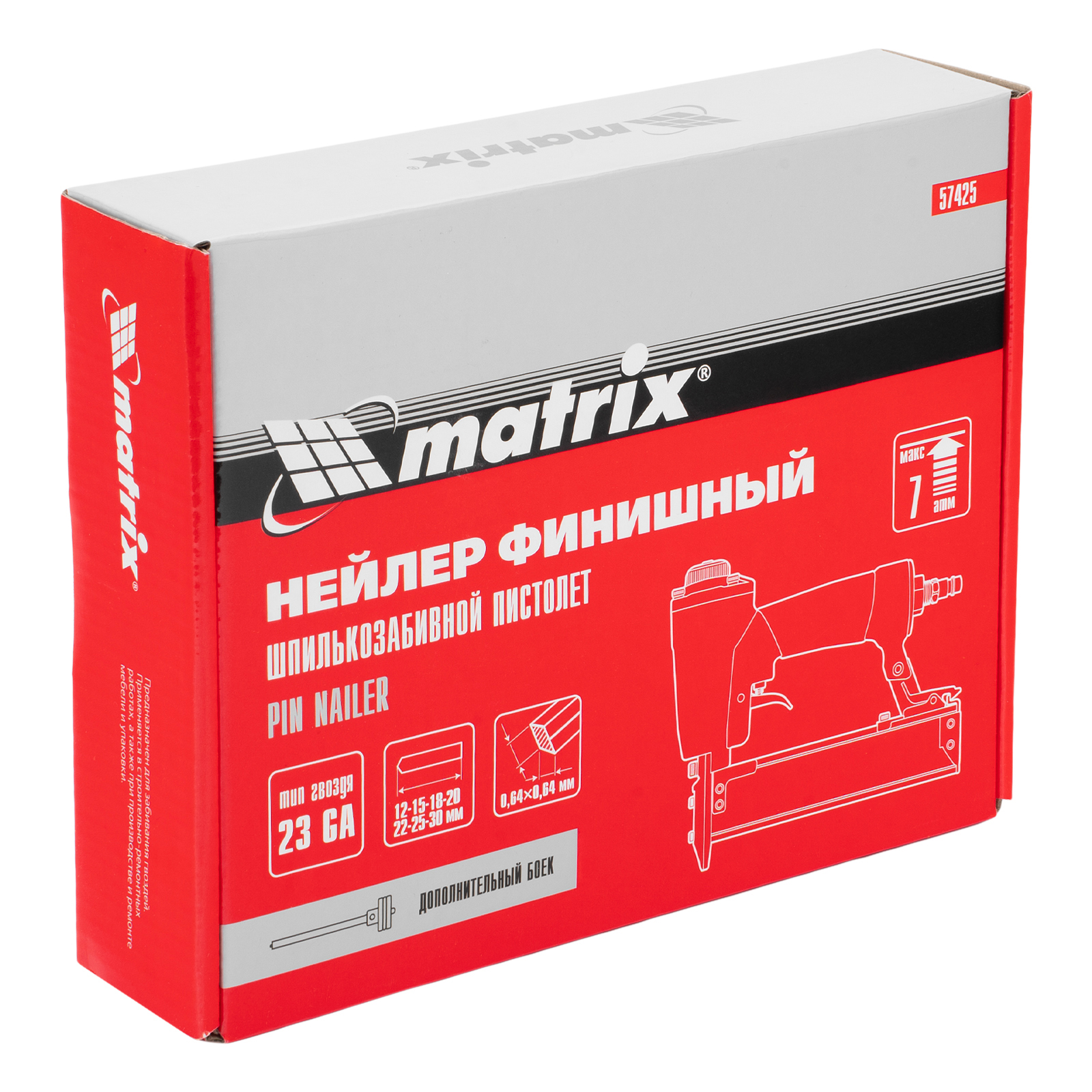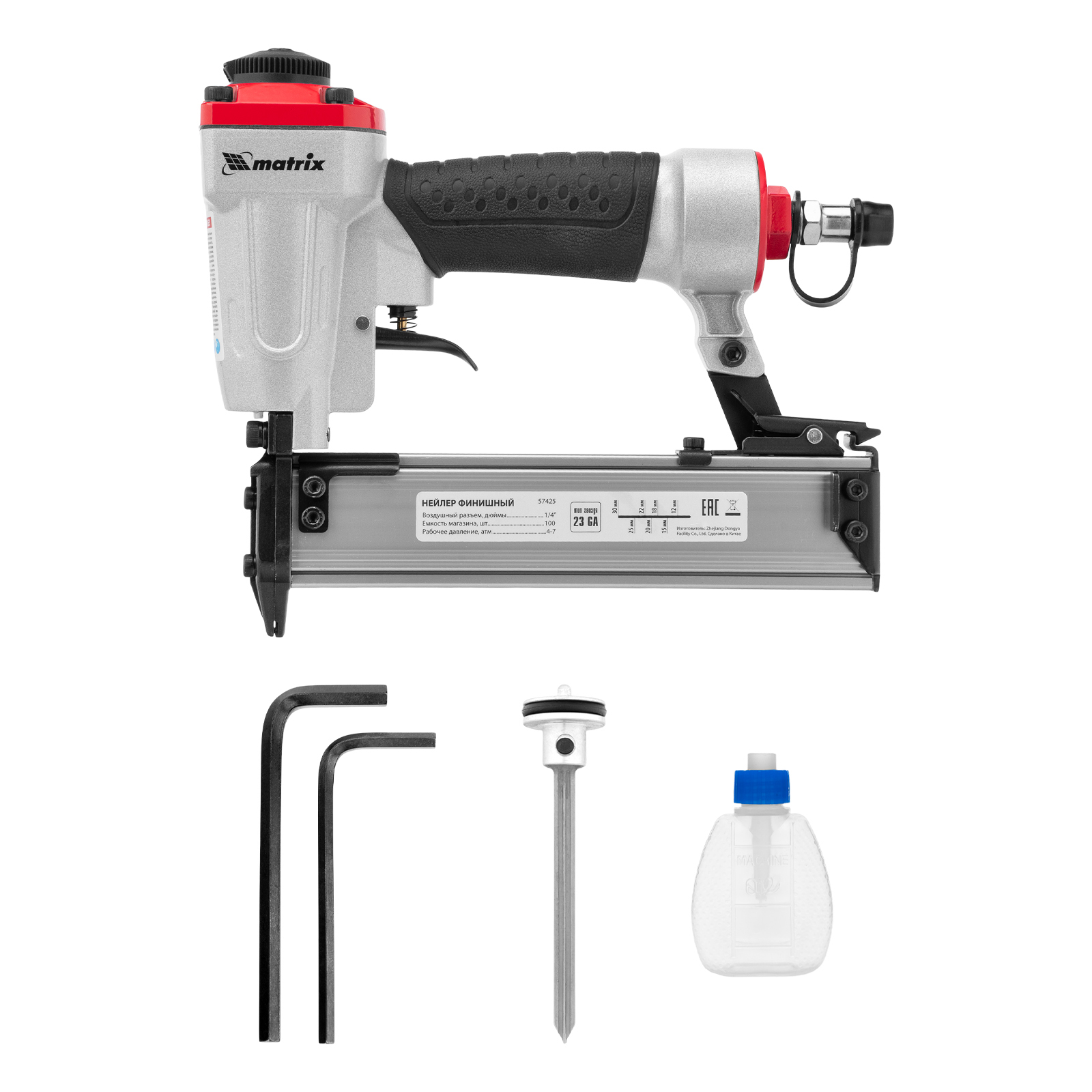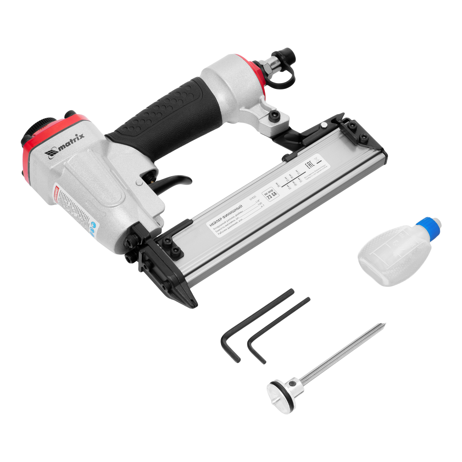 Нейлер финишный, шпилькозабивной пистолет, пневматический, гвоздь 23GA D 0.64 мм длина 10-30 мм Matrix в Челябинске