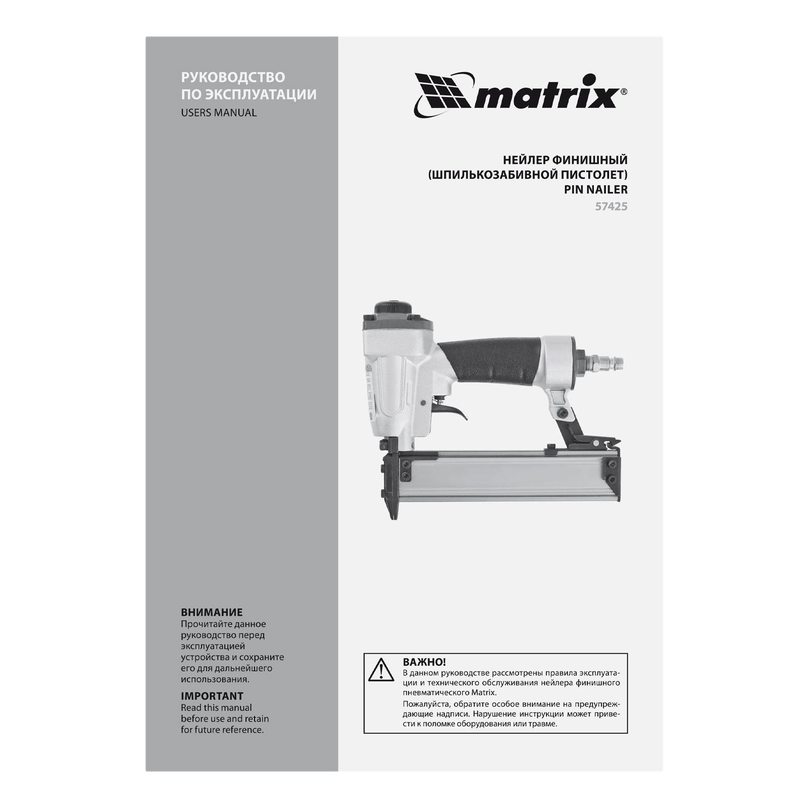Пневматический финишный нейлер Matrix 57425 (шпилькозабивной пистолет) предназначен для забивания гвоздей 23GA диаметром 0,64 мм и длиной 10-30 мм. Он используется для финишной отделки, а также сборки мебели и производства упаковки. Благодаря низкому расходу воздуха 0,7 л/мин нейлер совместим с любым типом компрессоров.