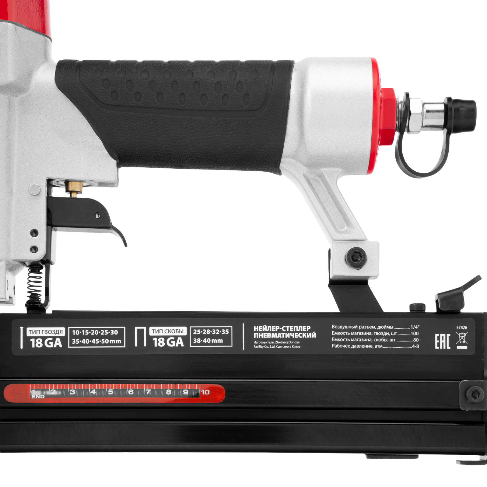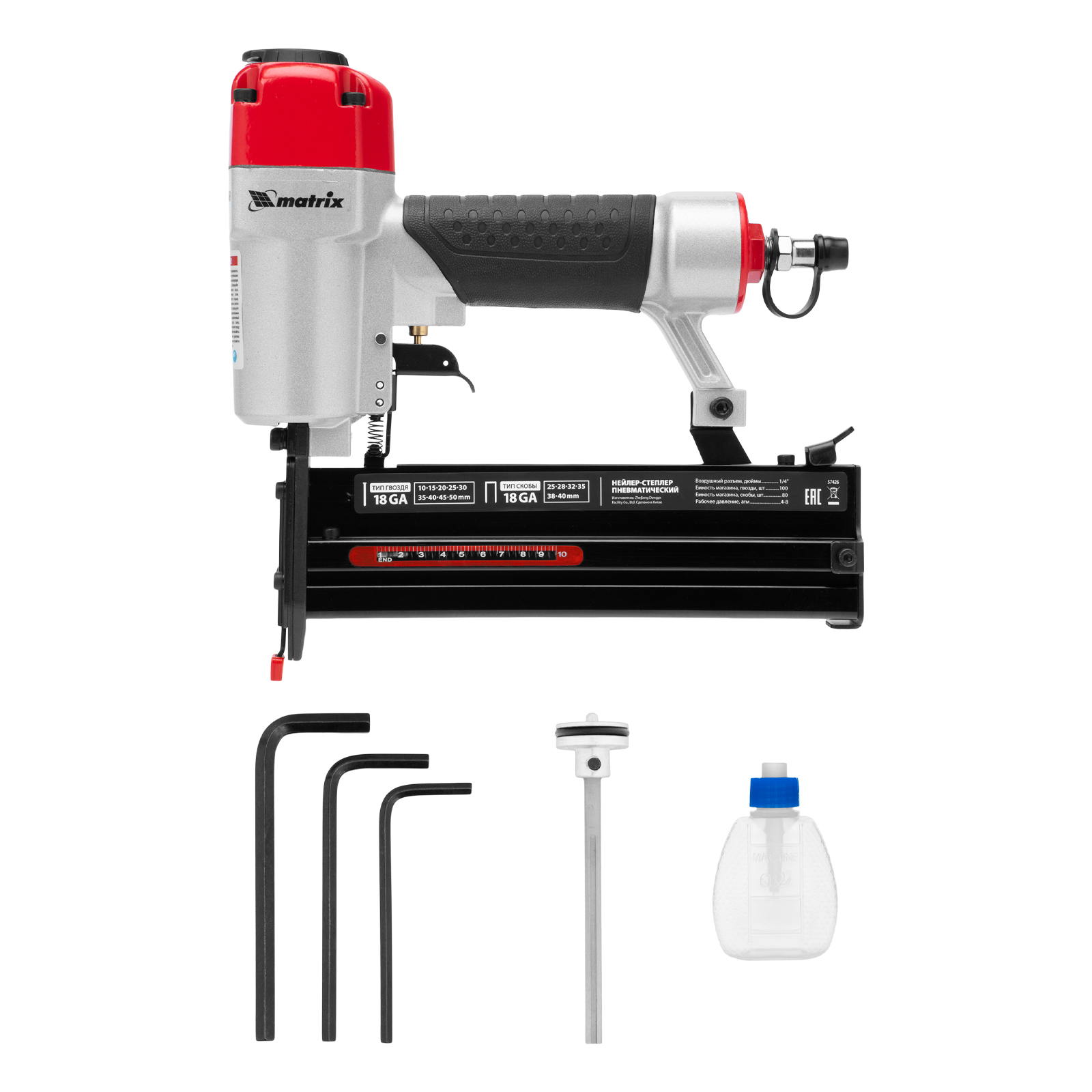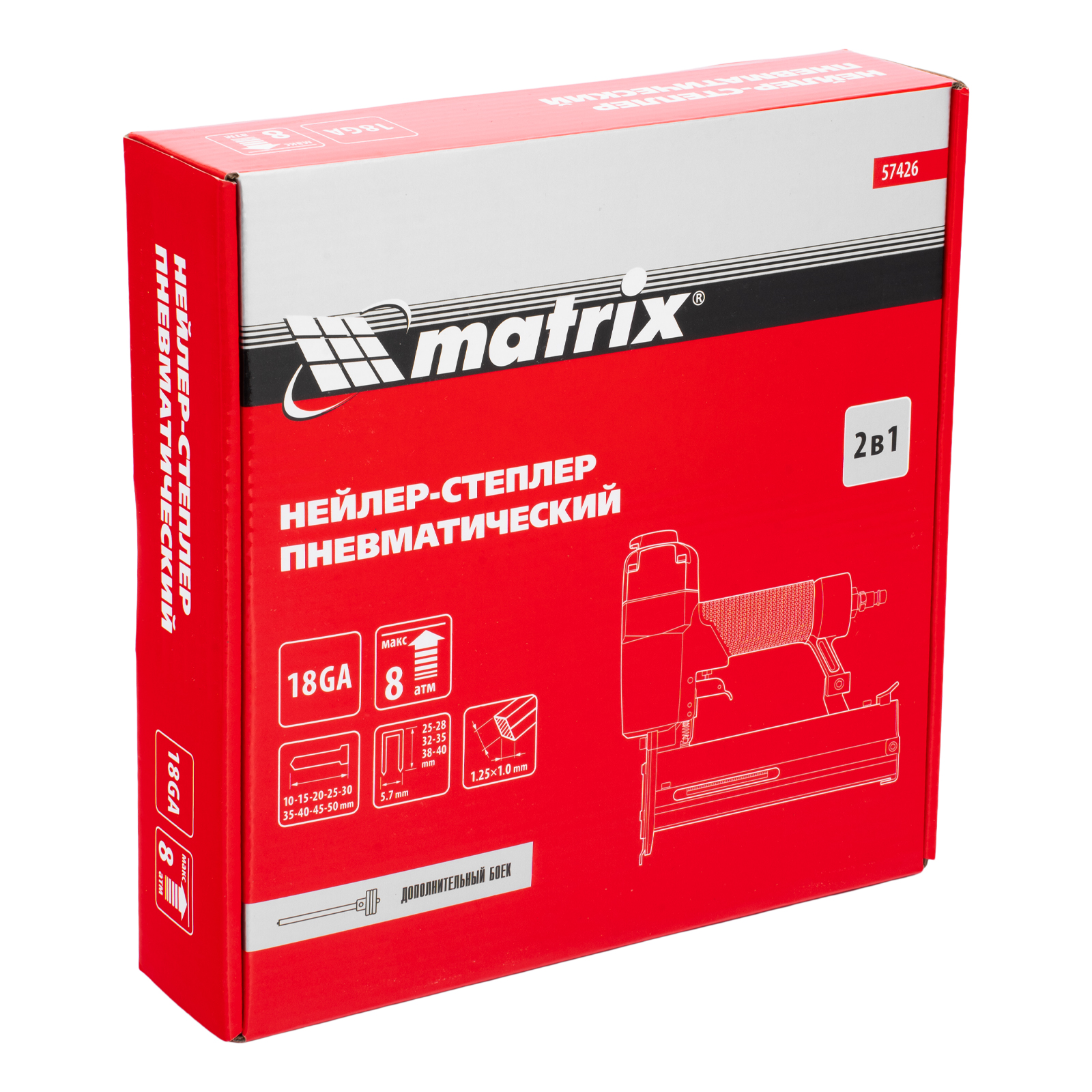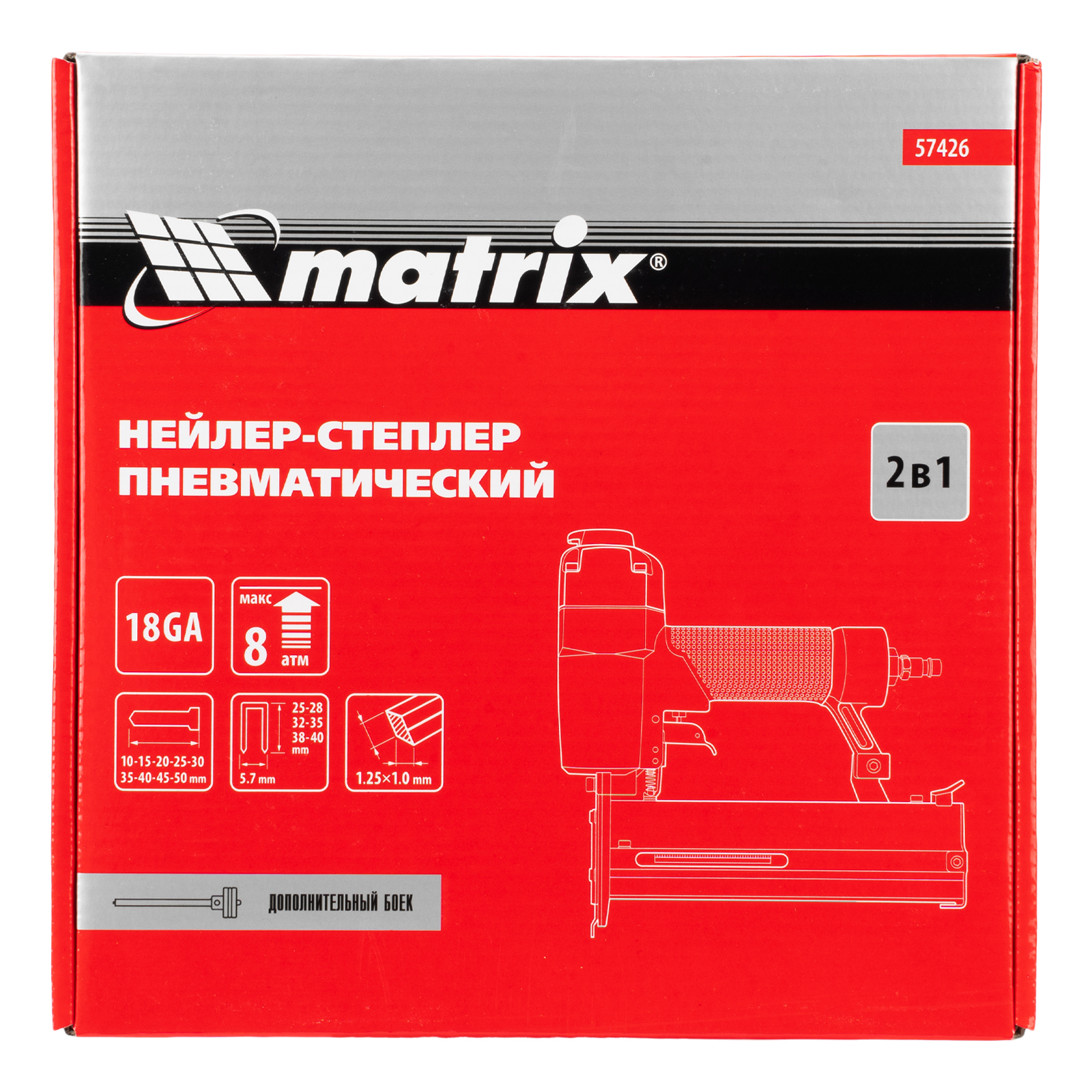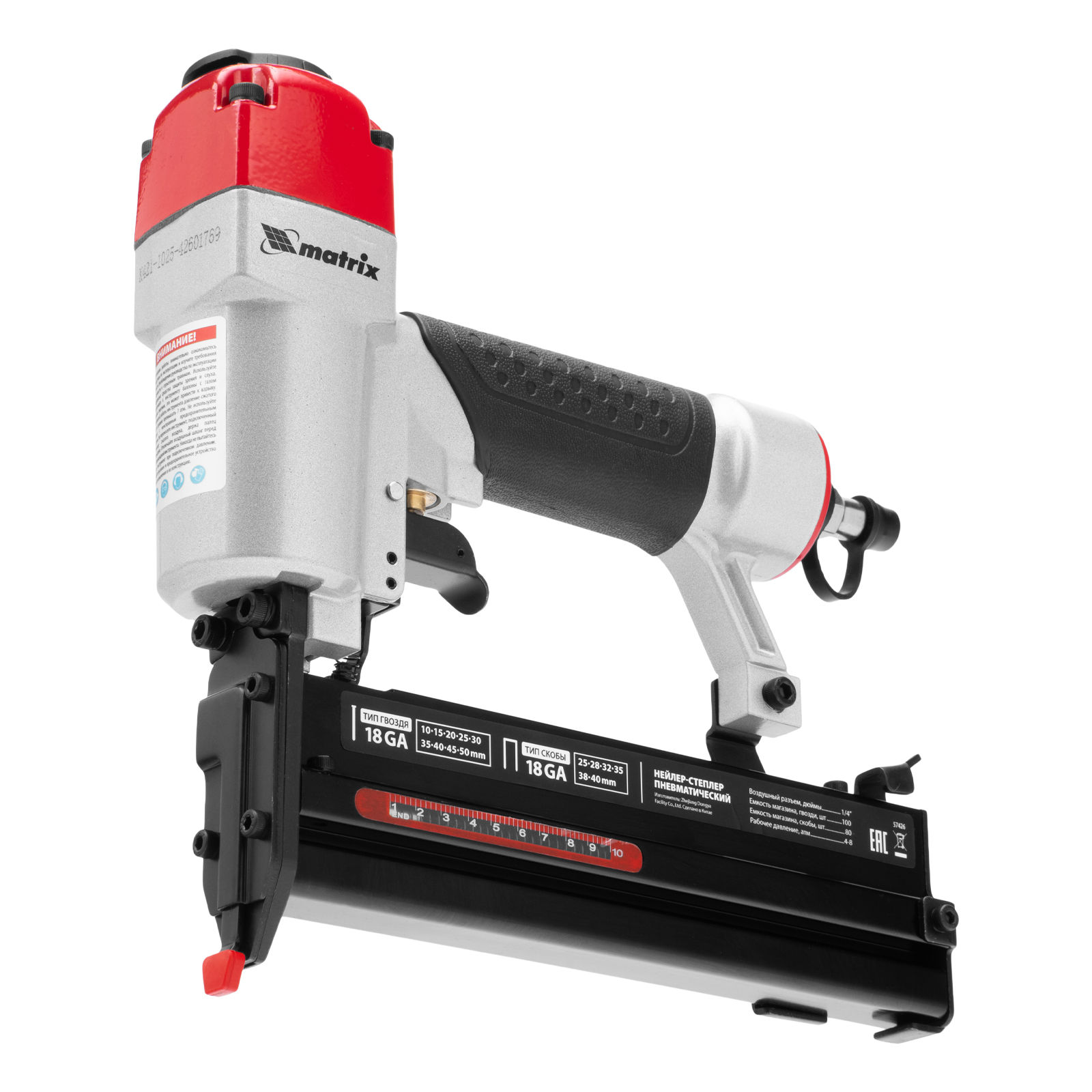 Нейлер-степлер пневматический 2 в 1, гвозди 18GA длина 10-50 мм, скобы 18GA длина 25-40 мм Matrix в Челябинске