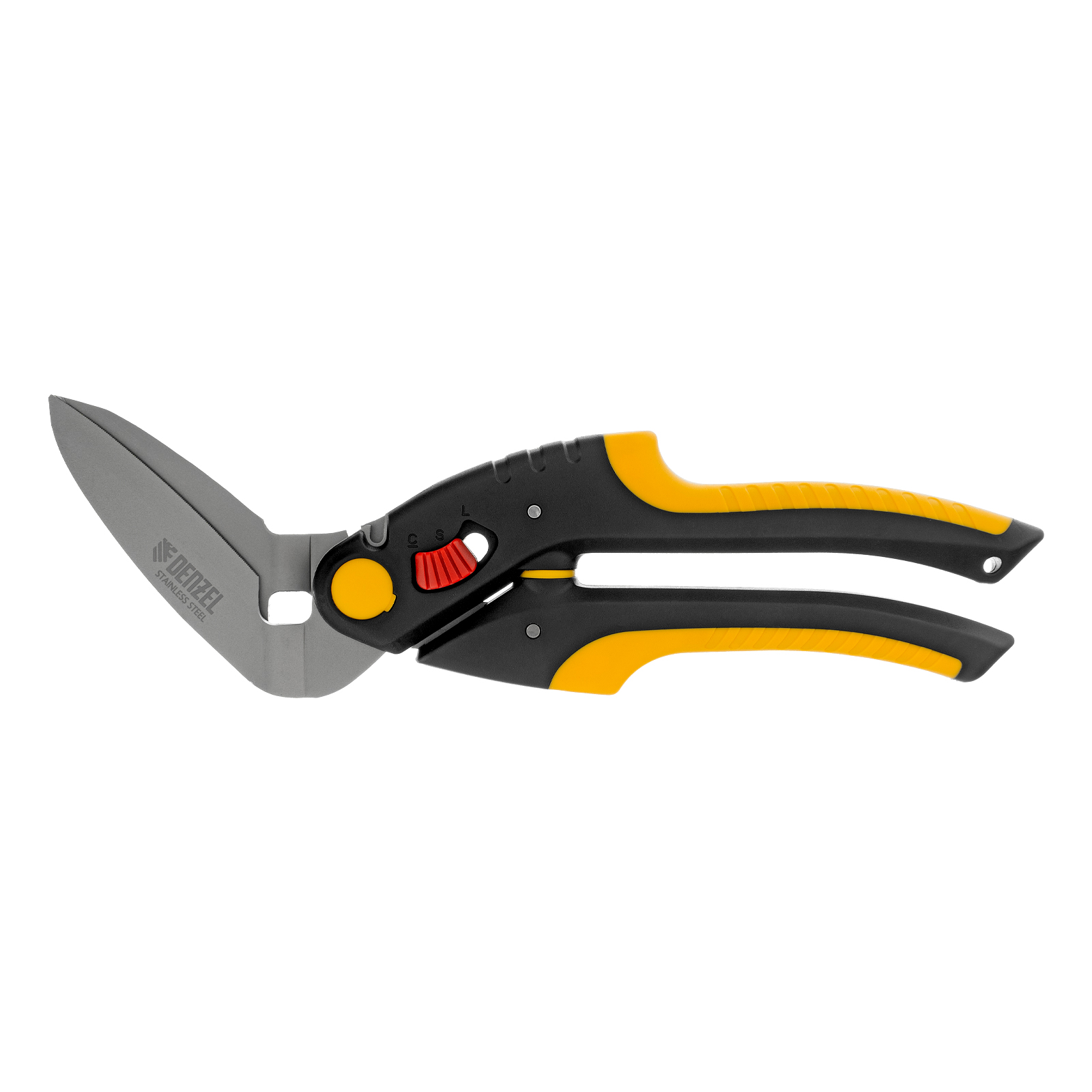 - Регулировка степени раскрытия лезвий — переключатель «большая-малая ладонь» позволяет настроить инструмент в соответствии с толщиной материала и размером руки пользователя.