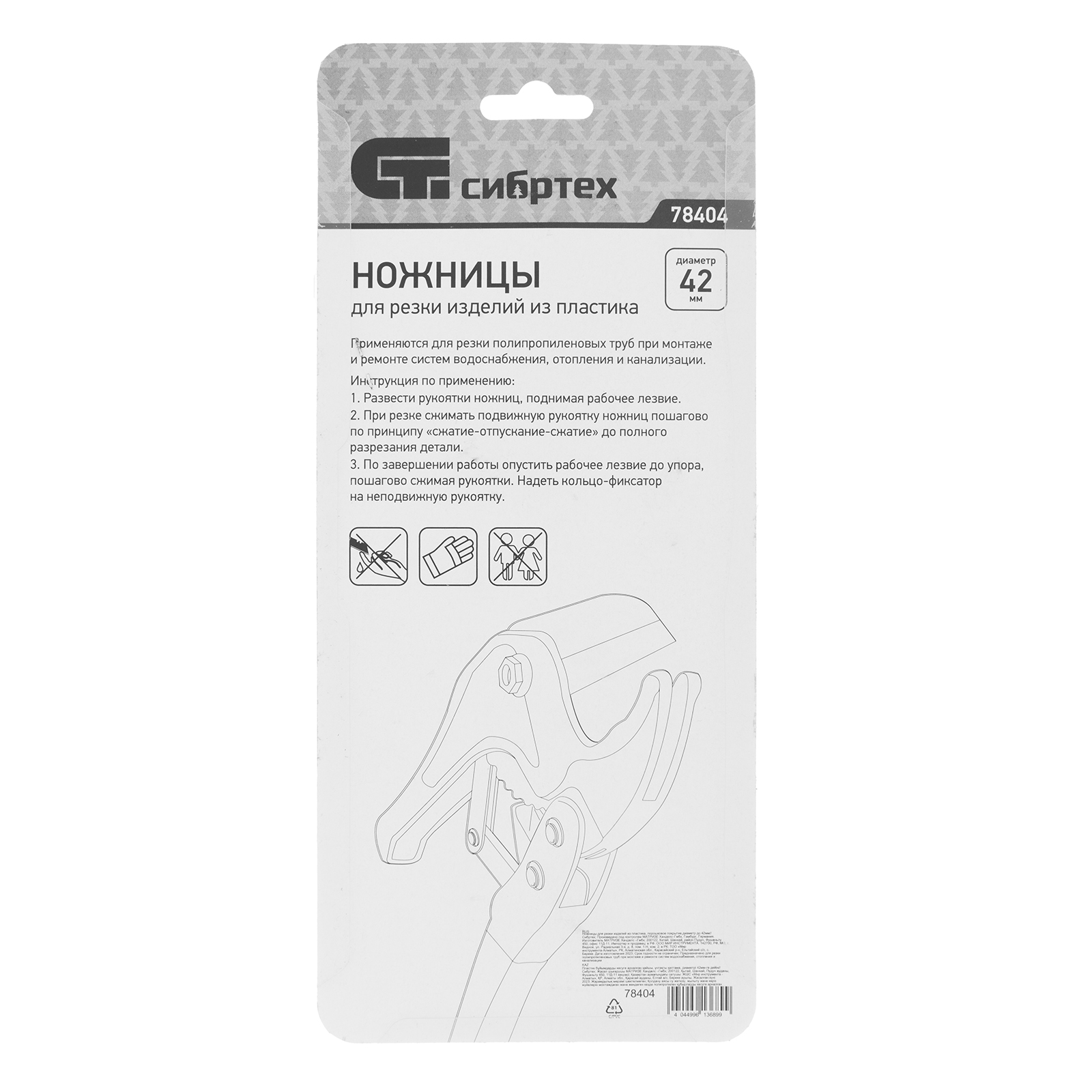 Ножницы Сибртех 78404 с порошковым покрытием — инструмент для резки изделий из пластика диаметром до 42 мм. Храповой механизм повышает эффективность реза, экономя силы мастера. Ножницы используются для бытовых работ с трубопроводными системами.