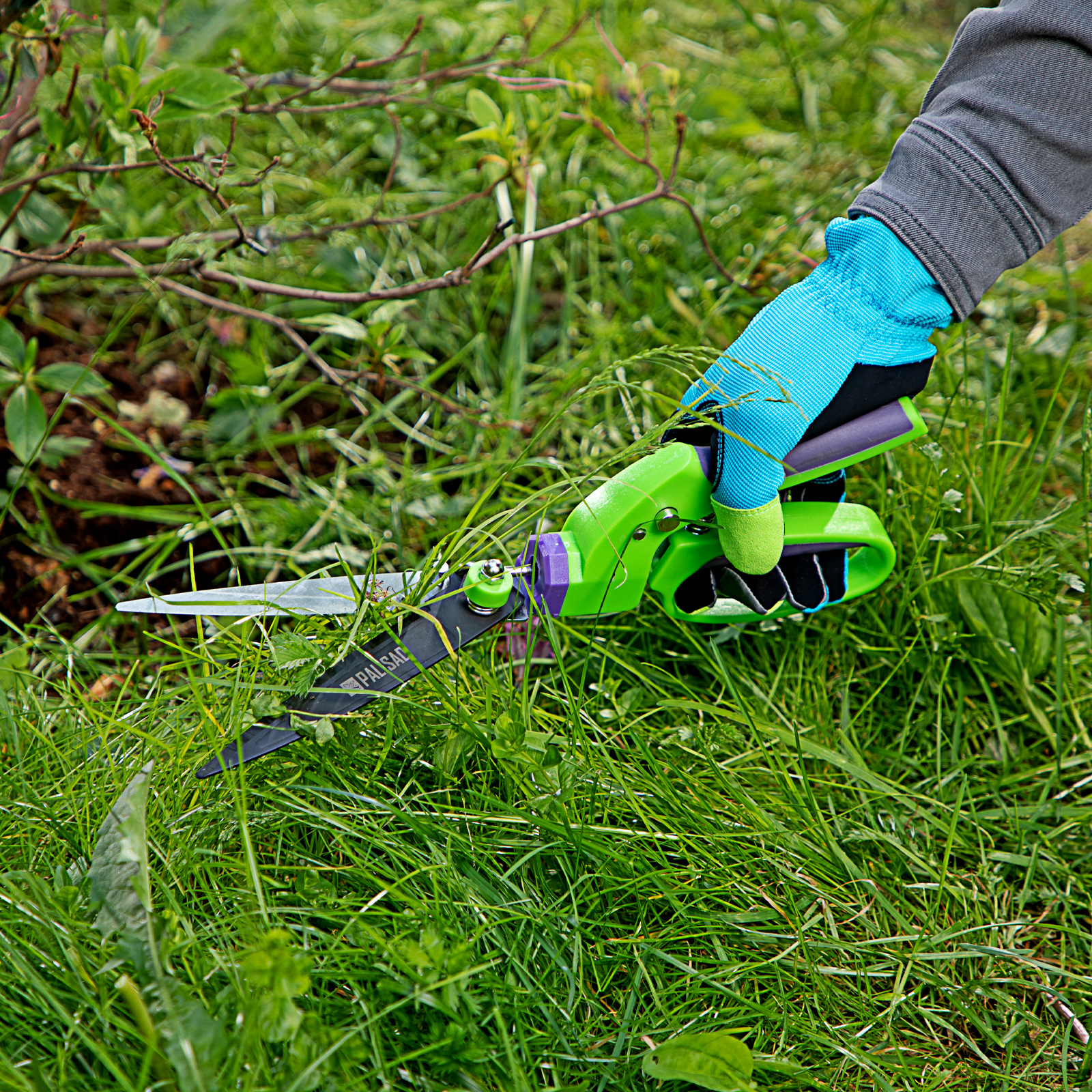 Газонные ножницы Palisad 60574 длиной 350 мм, с пластиковыми обрезиненными рукоятками, — инструмент для подстригания травы вдоль кромок газонов, дорожек, вдоль бордюров, ограждений, возле кустов. Лезвия поворачиваются на 180°, что облегчает работу в труднодоступных местах. Гарда на нижней рукоятке защищает пальцы от царапин, проколов и ссадин. Механизм автооткрывания препятствует заеданию лезвий при стрижке жесткой травы. Ножницы помогут привести в порядок дачный участок или придомовую территорию.