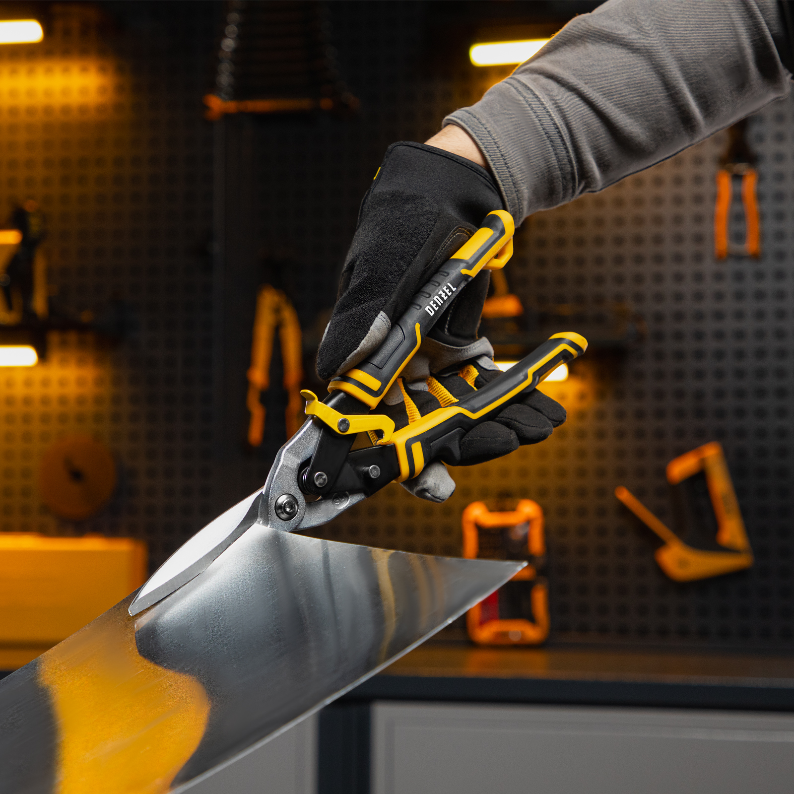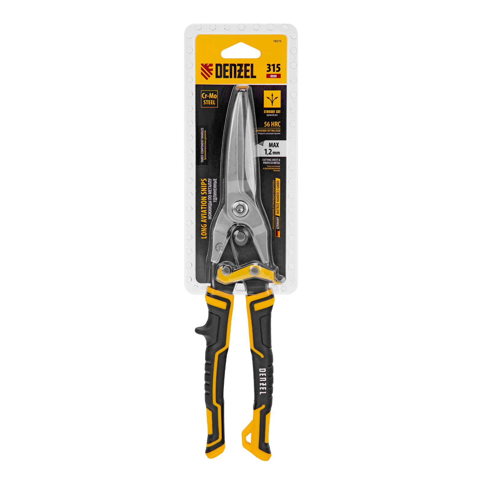 Ножницы по металлу, 315 мм, прямой проходной рез, сталь-CrMo, трехкомпонентные рукоятки Denzel в Челябинске