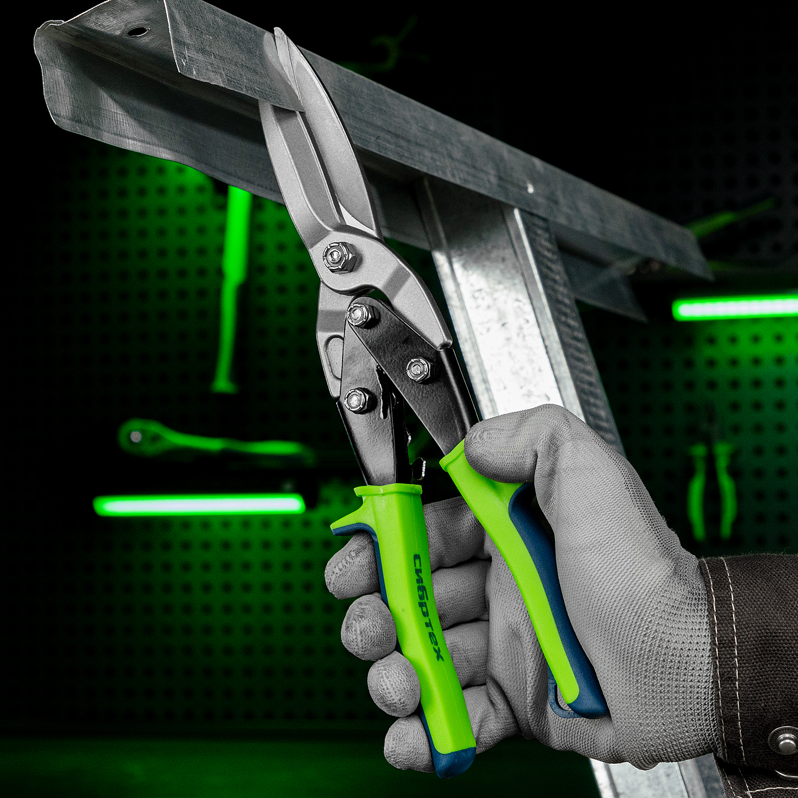 Ножницы по металлу, удлиненные, 285 мм, пряморежущие, двухкомпонентные обрезиненные рукоятки Сибртех в Челябинске