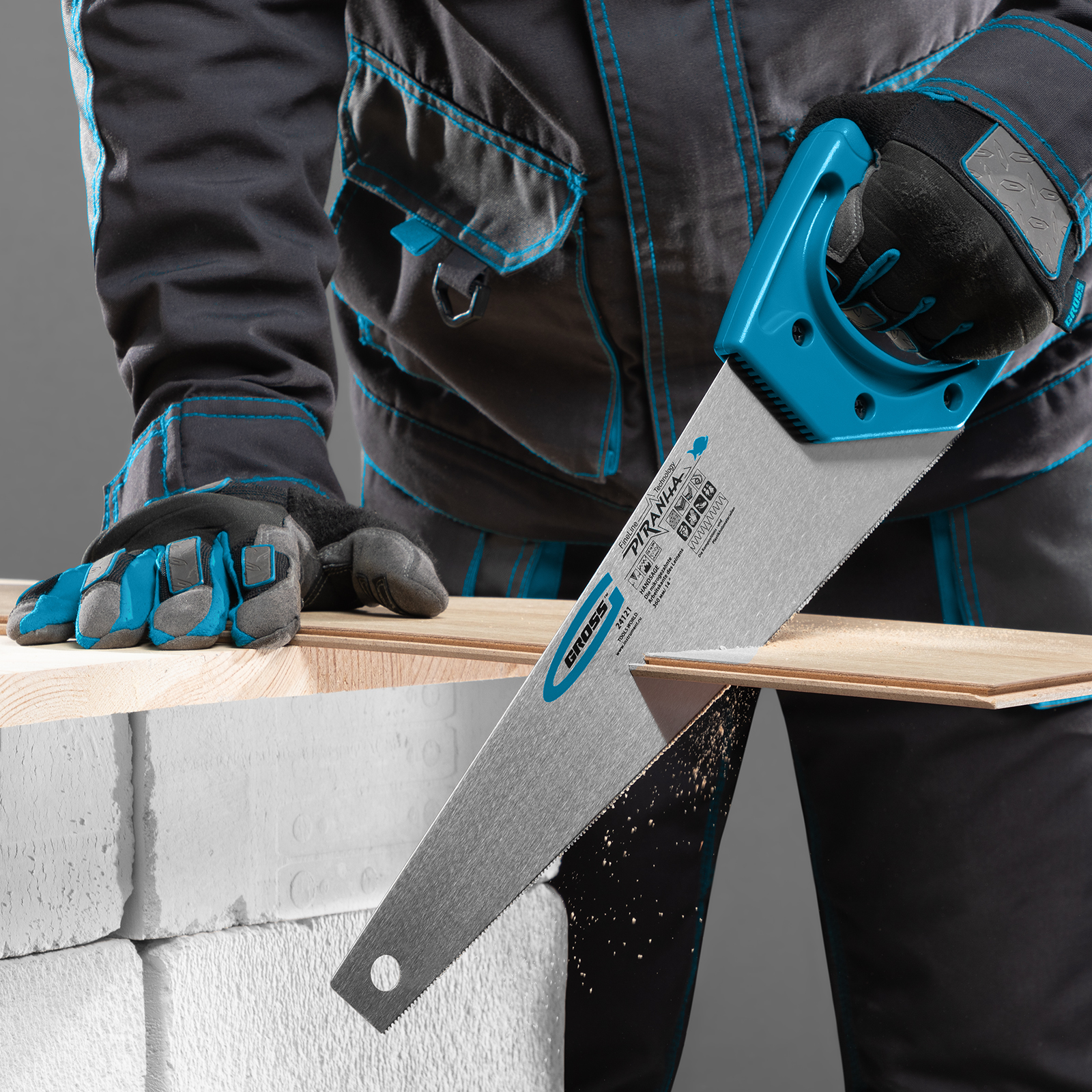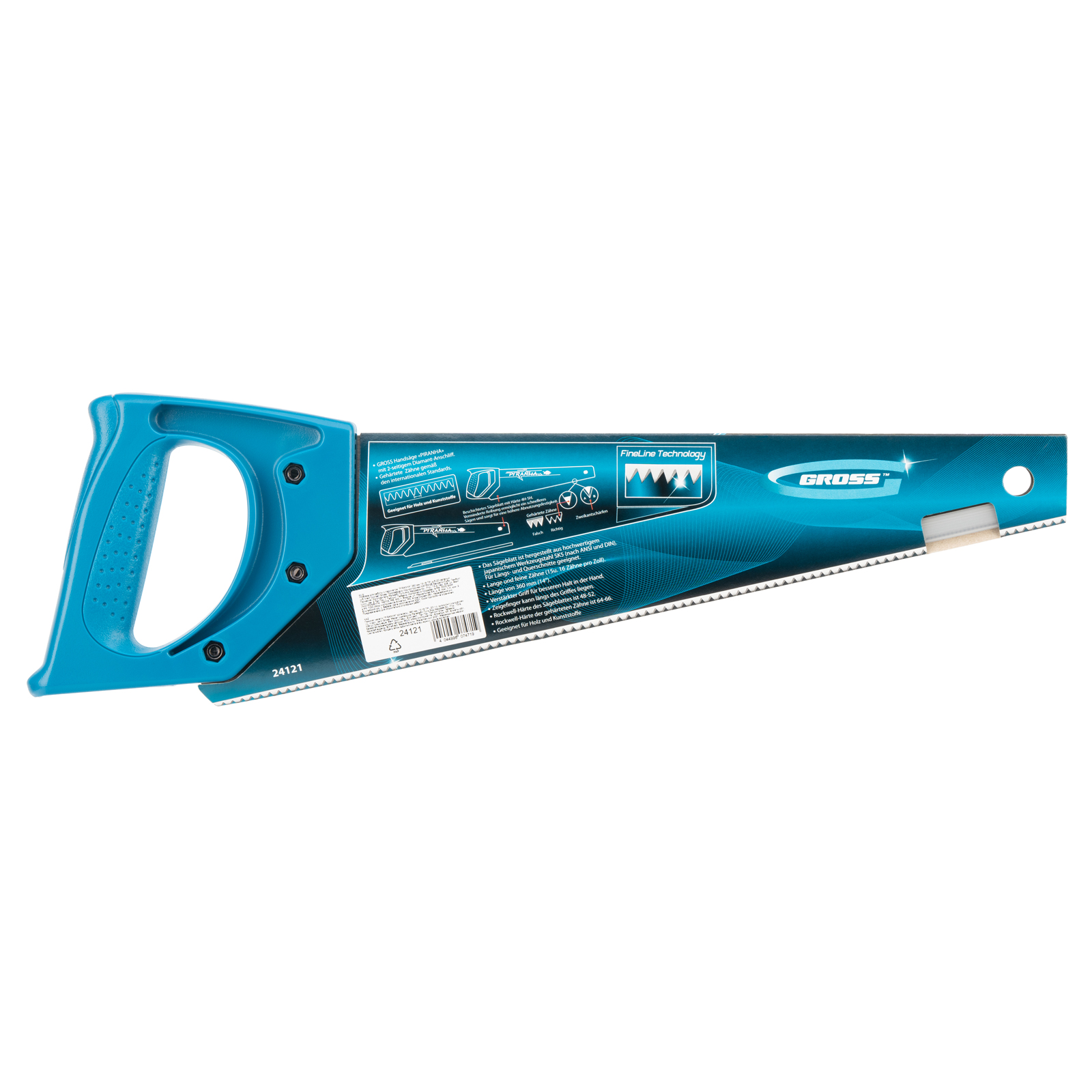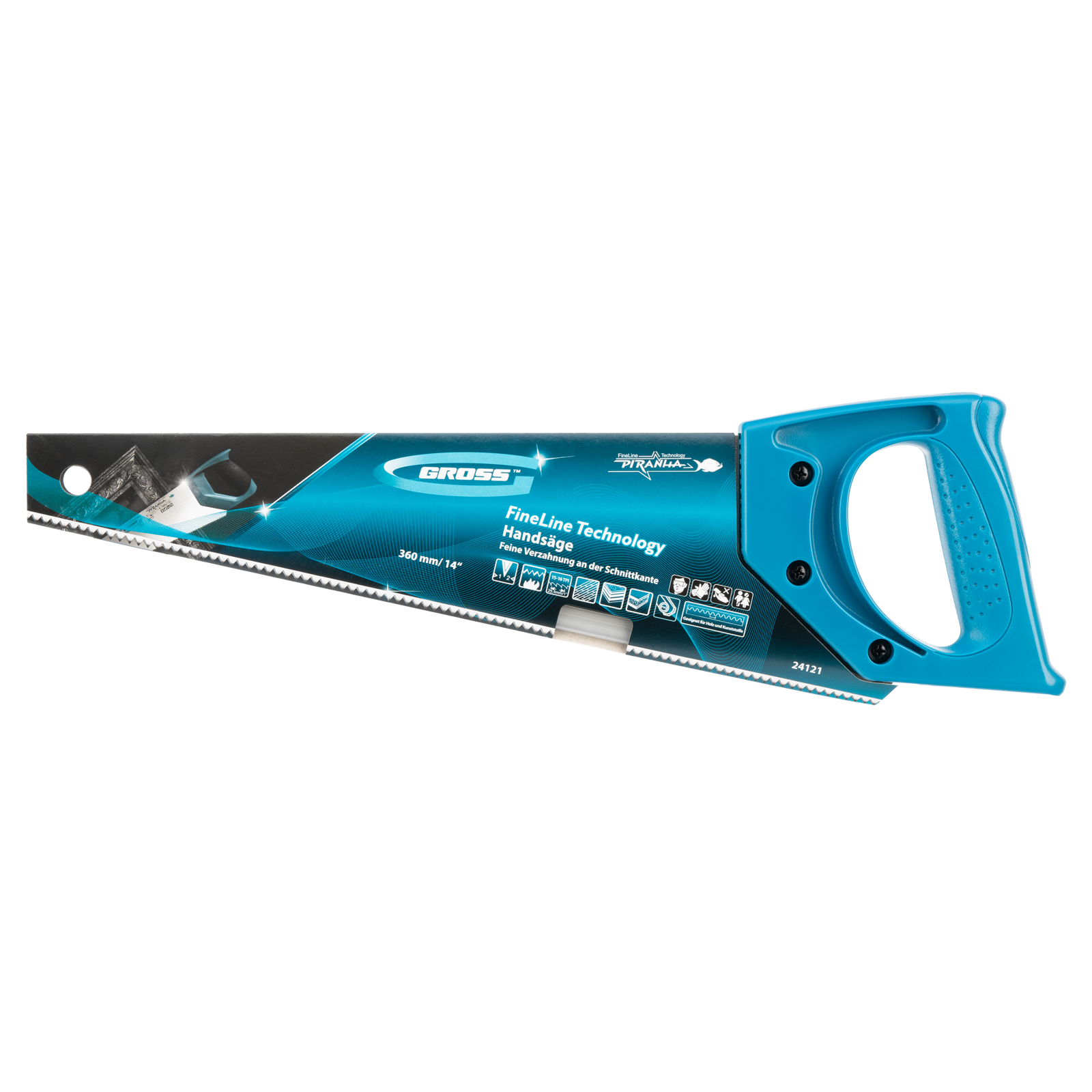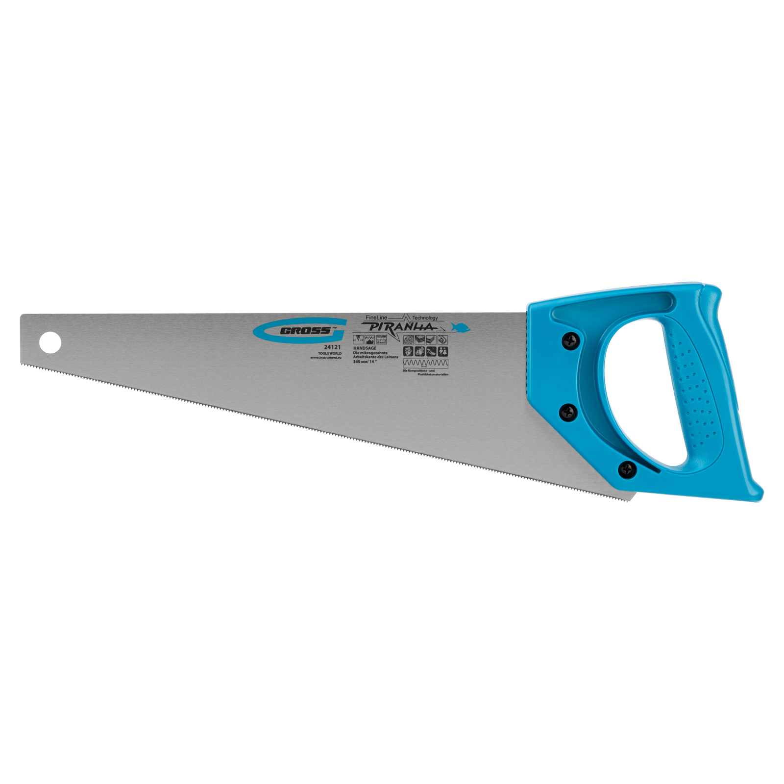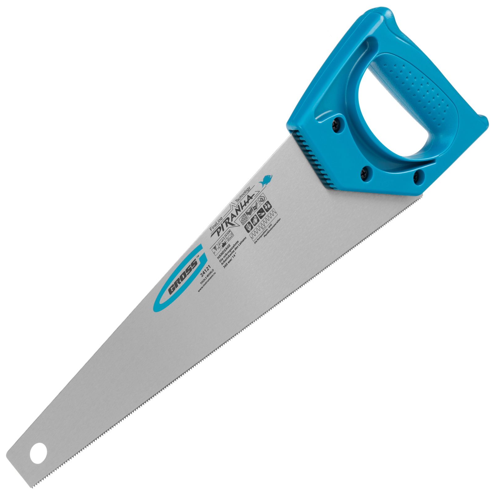 Ножовка для работы с ламинатом Gross PIRANHA 24121 с полотном длиной 360 мм, калеными зубьями с 2D-заточкой и шагом 15-16 TPI, с пластиковой рукояткой, предназначена для работы с композитными и пластическими материалами — ламинатом, МДФ, ДВП, ДСП, пенополистиролом, полиуретаном. Зубья с 2D-заточкой позволяют пилить в направлении как от себя, так и к себе. Благодаря мелким зубьям с шагом 15-16 TPI удается получить максимально тонкий и точный распил. Ножовка будет полезна во время ремонтных и отделочных работ.
