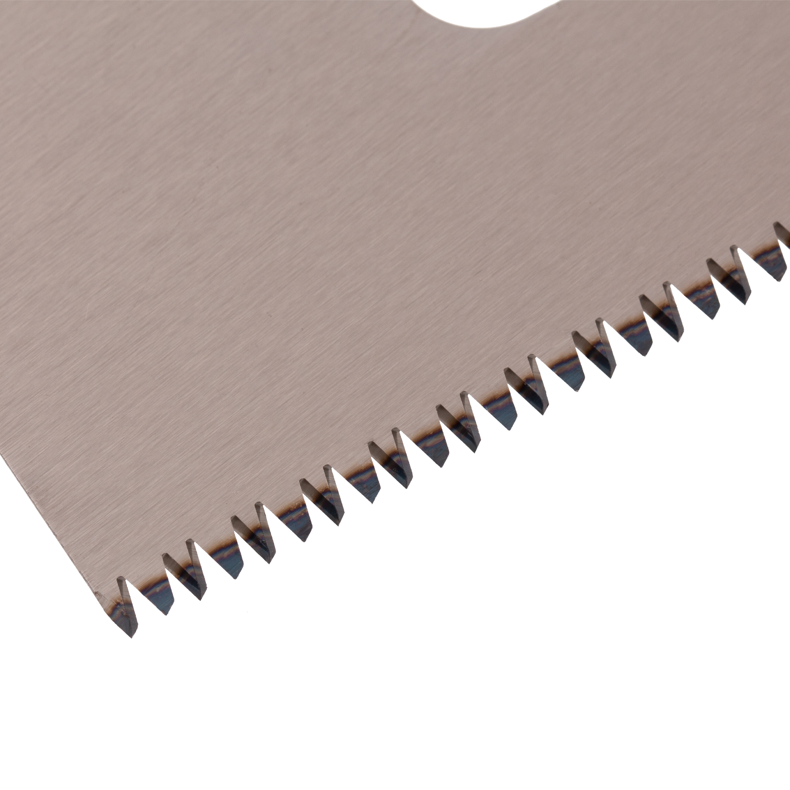 Ножовка по дереву Gross PIRANHA 24110 с полотном длиной 400 мм, калеными зубьями с 3D-заточкой и шагом 11-12 TPI, 2-компонентной рукояткой, предназначена для распиловки заготовок из древесины, ДСП, ДВП, МДФ и ламината, а также из пластических материалов, таких как пенополистирол и полиуретан. Может производить продольный и поперечный распил. Мелкие зубья с шагом 11-12 TPI позволяют выполнять точный и чистый рез. Ножовка обладает высокой производительностью благодаря трехгранной заточке зубьев. Инструмент используется в столярном деле.