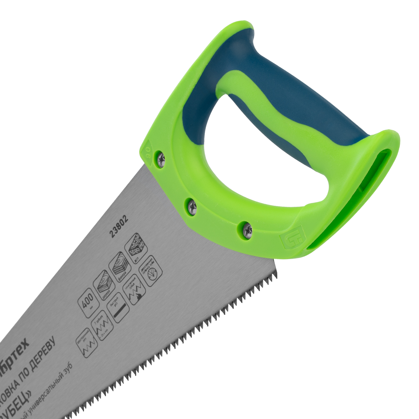 Ножовка по дереву Сибртех «Зубец» 23802 с полотном длиной 400 мм, калеными зубьями с 2D-заточкой и шагом 7-8 TPI, с двухкомпонентной рукояткой, используется для распиливания заготовок из древесины, фанеры и ДСП. Рабочая часть, содержащая 7-8 зубьев на дюйм, обеспечивает быстрый двусторонний рез. Режущую кромку можно перетачивать при необходимости. Ножовка будет полезна столяру, плотнику и домашнему мастеру.