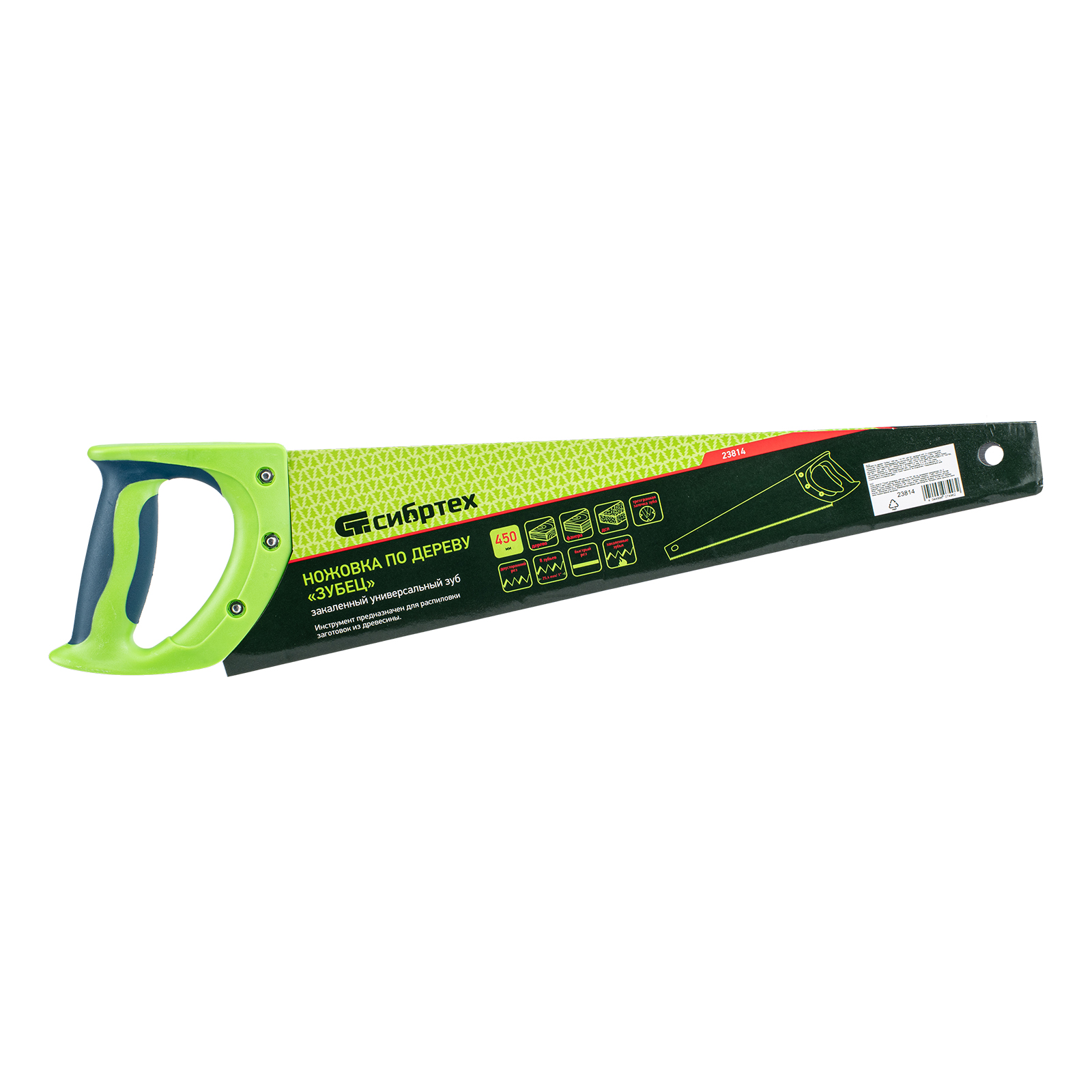 Ножовка Сибртех по дереву «Зубец» 23814 с полотном длиной 450 мм, с калеными зубьями с 3D-заточкой и шагом 7-8 TPI, с двухкомпонентной рукояткой, предназначена для продольной и поперечной распиловки древесины, фанеры и ДСП. Инструмент обладает высокой производительностью благодаря зубьям с универсальным шагом 7-8 TPI и трехгранной заточке. Ножовка используется для выполнения столярных и плотницких работ, будет полезна в быту.
