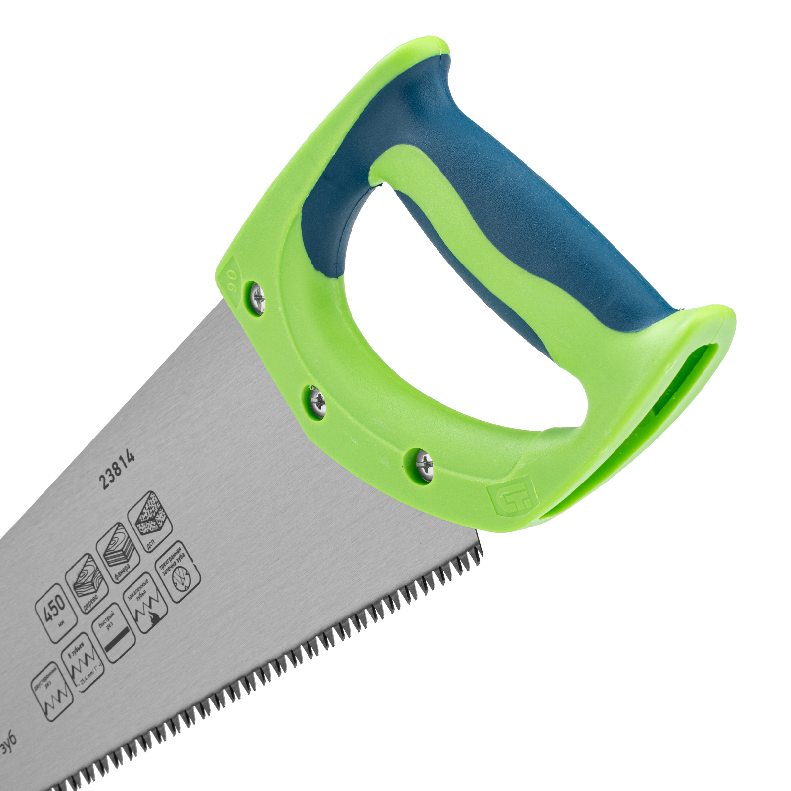 - Надежная конструкция — рукоятка из ударопрочного ABS-пластика прикреплена к полотну 3 винтами.