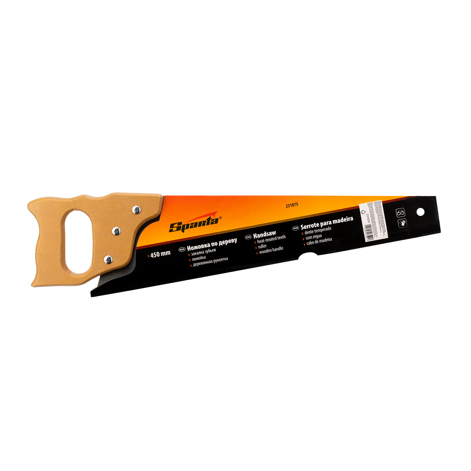 Ножовка по дереву Sparta 231875 с полотном длиной 450 мм, с калеными зубьями с шагом 7-8 TPI, с линейкой и деревянной рукояткой, предназначена для продольно-поперечного распиливания древесины. Благодаря зубьям с 2D-заточкой подходит для двухстороннего реза. Режущую кромку можно перетачивать. На полотно нанесена измерительная шкала, позволяющая производить замеры, не тратя время на поиск линейки. Ножовка используется в столярном и плотницком деле, а также полезна дома и на даче.
