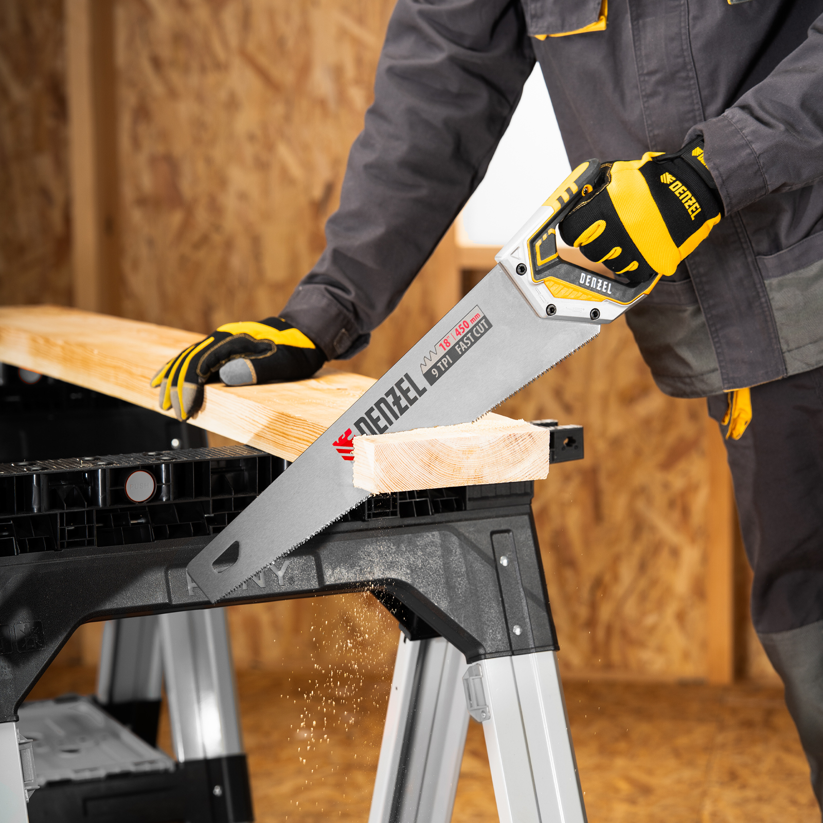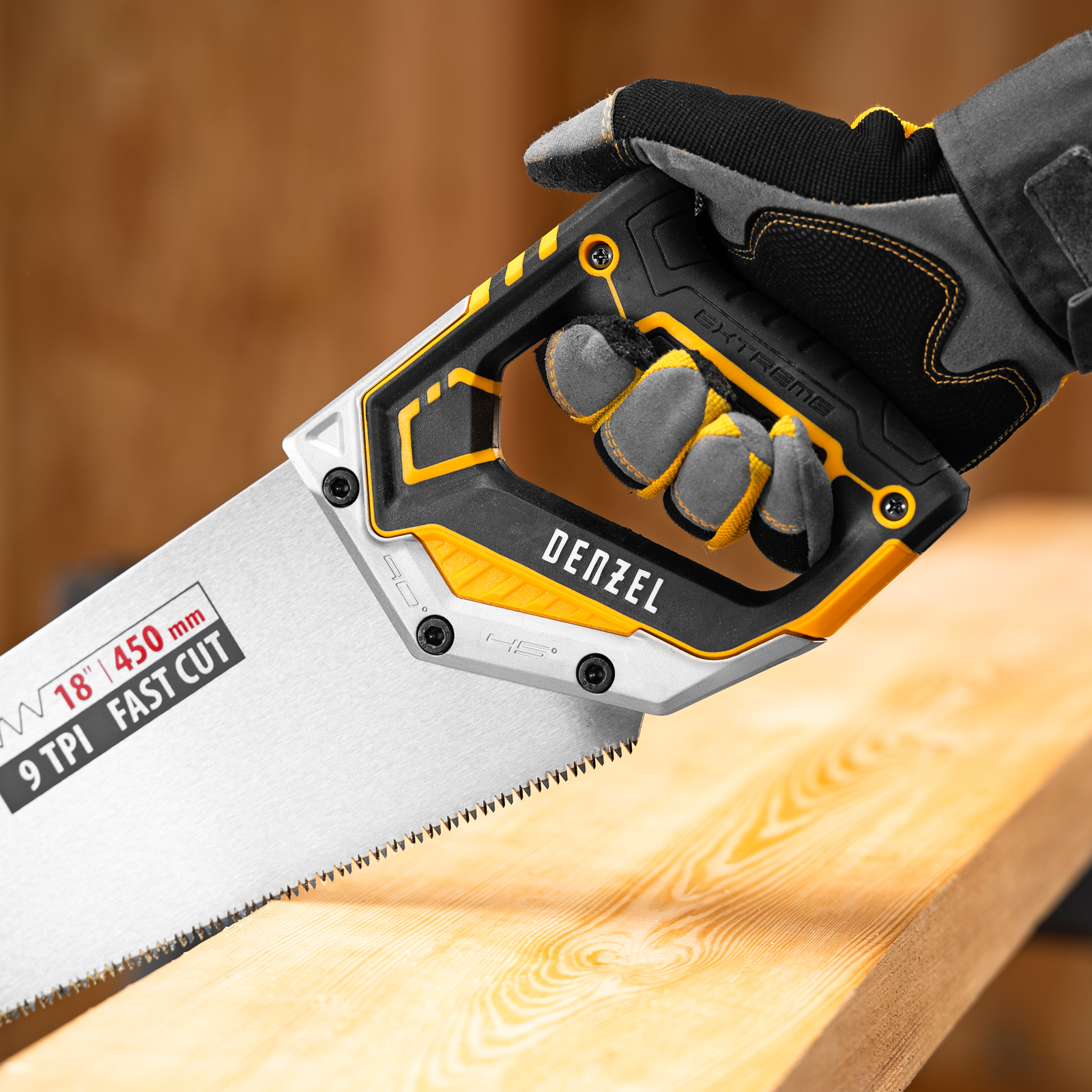 Ножовка по дереву, 450 мм, 9 TPI, зуб 3D, металлопластиковая рукоятка Denzel в Челябинске