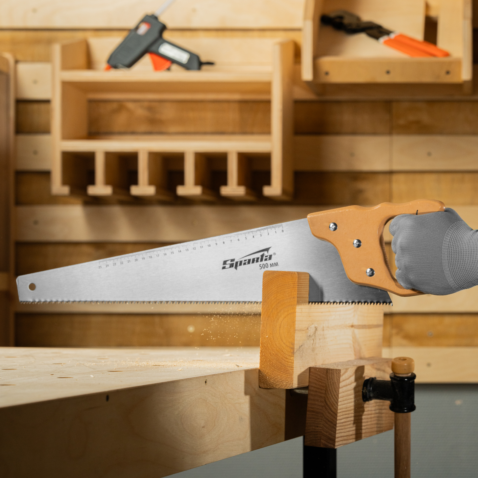 Ножовка по дереву, 500 мм, 7-8 TPI, каленый зуб, линейка, деревянная рукоятка Sparta в Челябинске