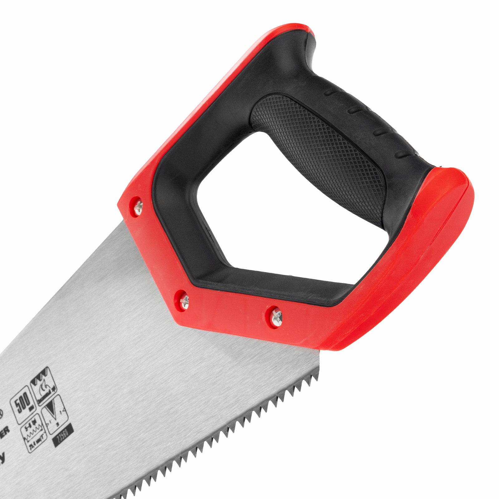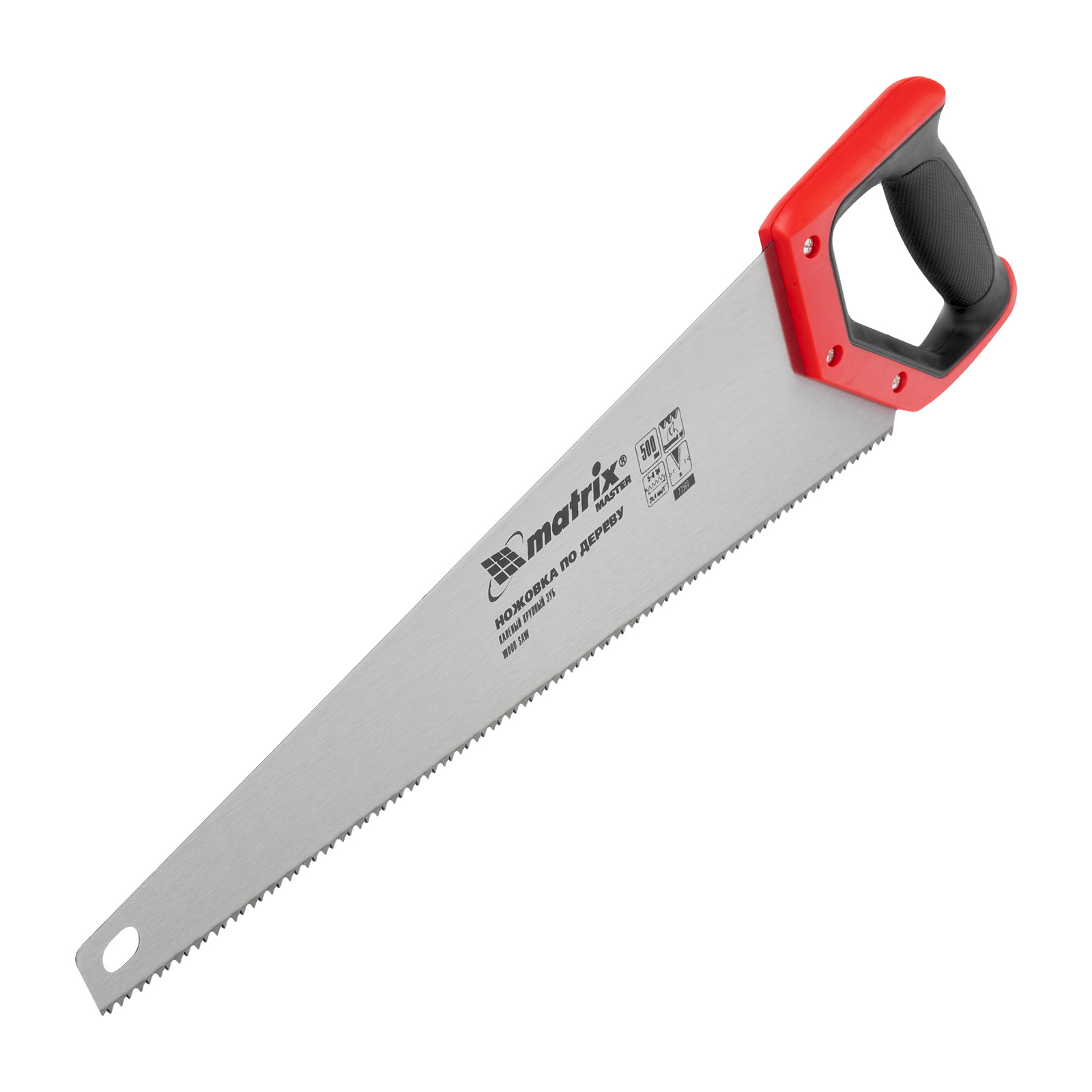 Ножовка по дереву Matrix 23560 с полотном длиной 500 мм, с крупными калеными зубьями с шагом 5-6 TPI, волновой вырубкой и 2D-заточкой, с двухкомпонентной рукояткой, используется для быстрой продольной или поперечной распиловки древесины. Высокая скорость работы достигается благодаря крупным зубьям с волновой заточкой и универсальным шагом 4-5 мм. Двухгранная заточка зубьев дает возможность пилить в направлении как от себя, так и на себя, а также перетачивать режущую кромку при необходимости. Ножовка подходит для выполнения плотницких и хозяйственных работ.
