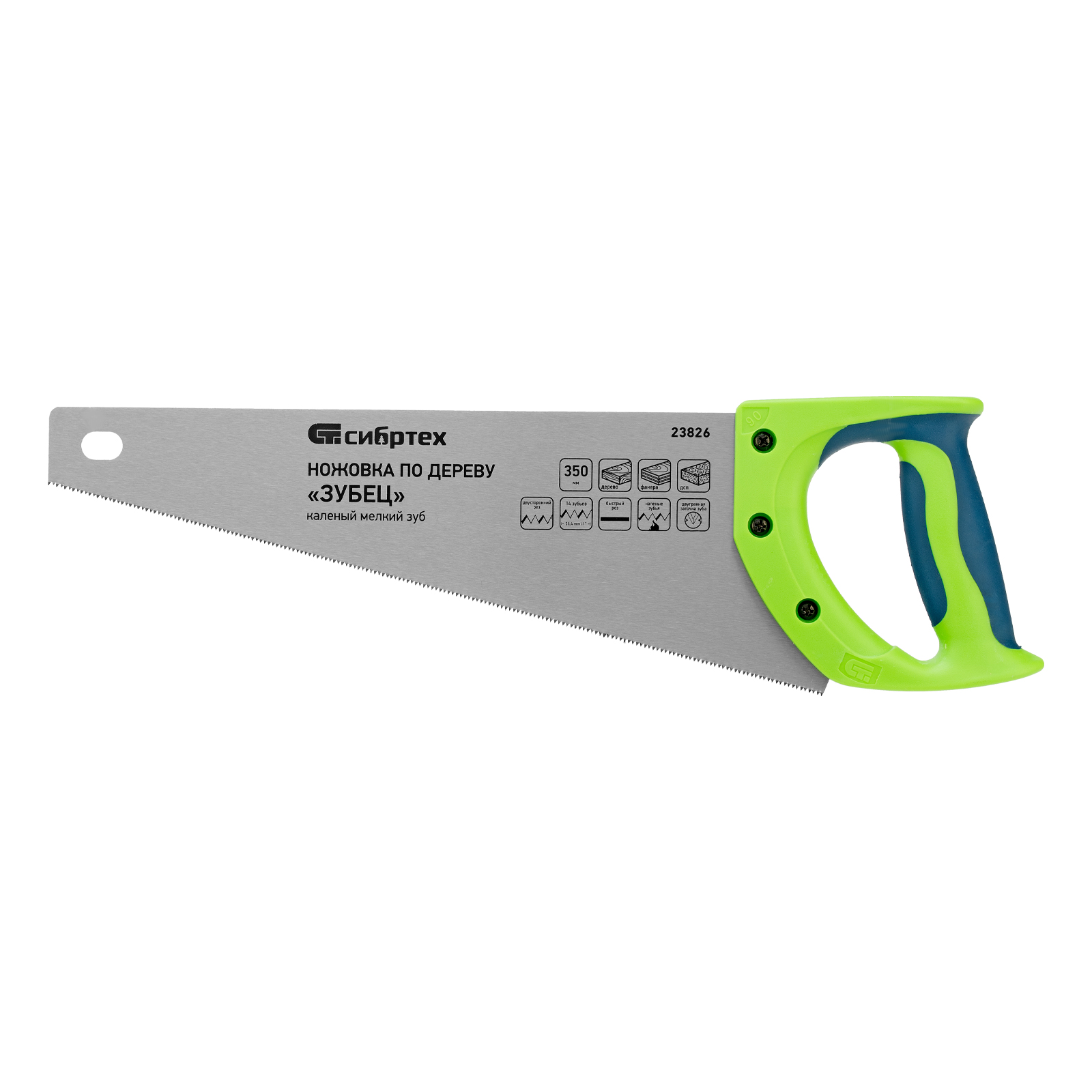Ножовка по дереву Сибртех «Зубец» 23826 с полотном длиной 350 мм, калеными зубьями с 2D-заточкой и шагом 14 TPI, двухкомпонентной рукояткой, предназначена для точных пильных работ по древесине, фанере и ДСП. Подходит для двустороннего реза. Режущая часть с мелкими зубьями в количестве 14 на дюйм выполняет аккуратный и чистый распил. При необходимости кромку ножовки можно заточить. Инструмент будет полезен в столярной мастерской, а также пригодится в быту.