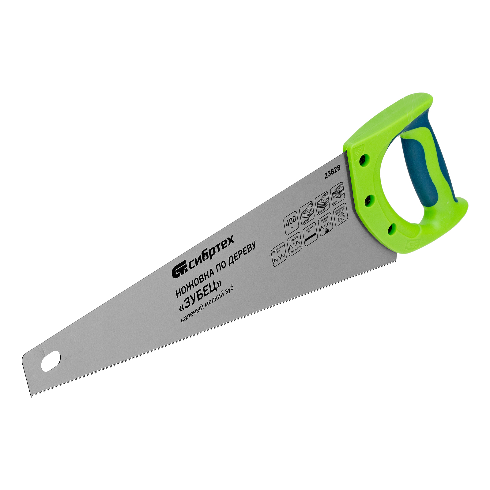 Ножовка по дереву Сибртех «Зубец» 23828 с полотном длиной 400 мм, калеными зубьями с 2D-заточкой и шагом 14 TPI, двухкомпонентной рукояткой, предназначена для точных пильных работ по древесине, фанере и ДСП. Подходит для двустороннего реза. Режущая часть с мелкими зубьями в количестве 14 на дюйм выполняет аккуратный и чистый распил. При необходимости кромку ножовки можно заточить. Инструмент будет полезен в столярной мастерской, а также пригодится в быту.