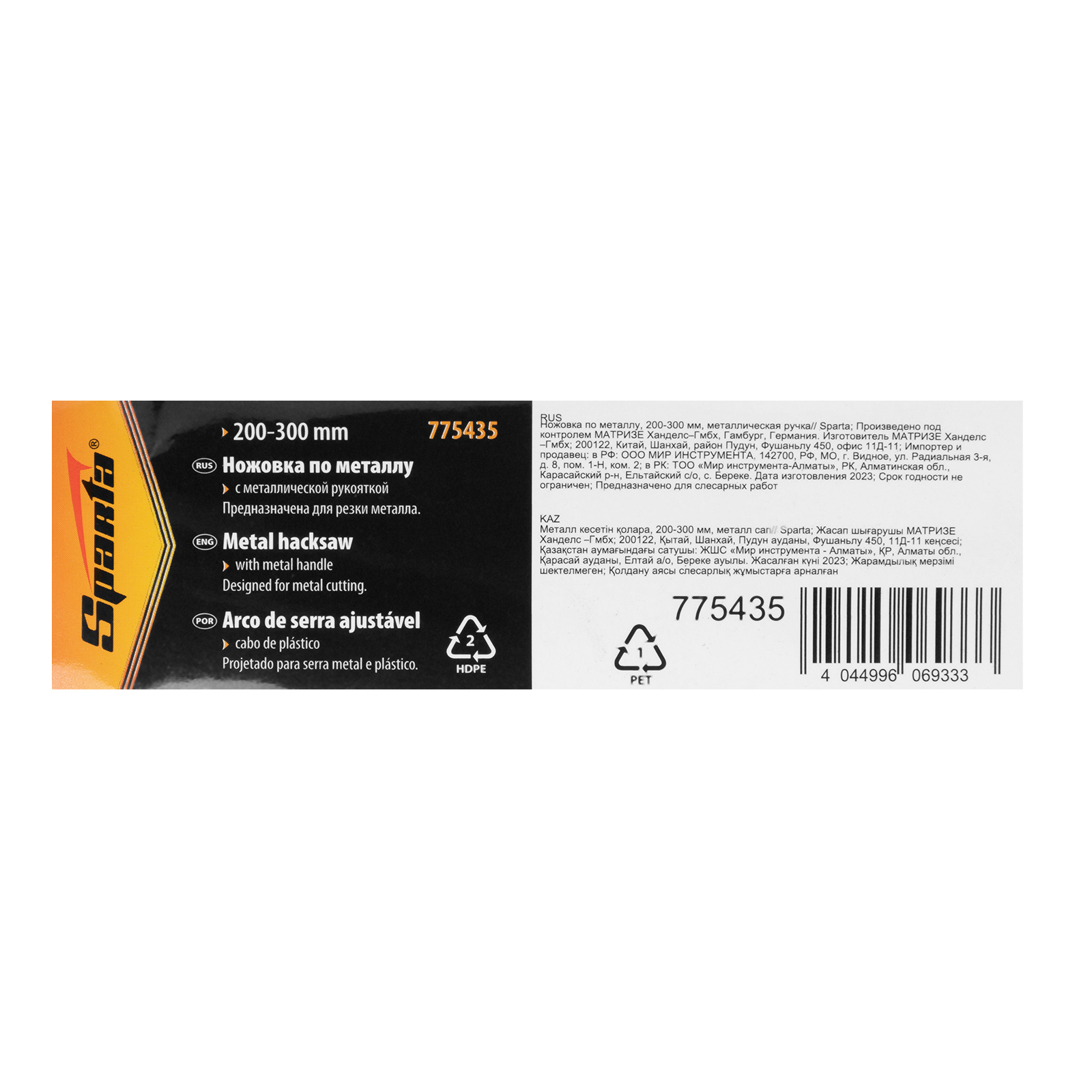 Ножовка по металлу, 200-300 мм, металлическая ручка Sparta в Челябинске