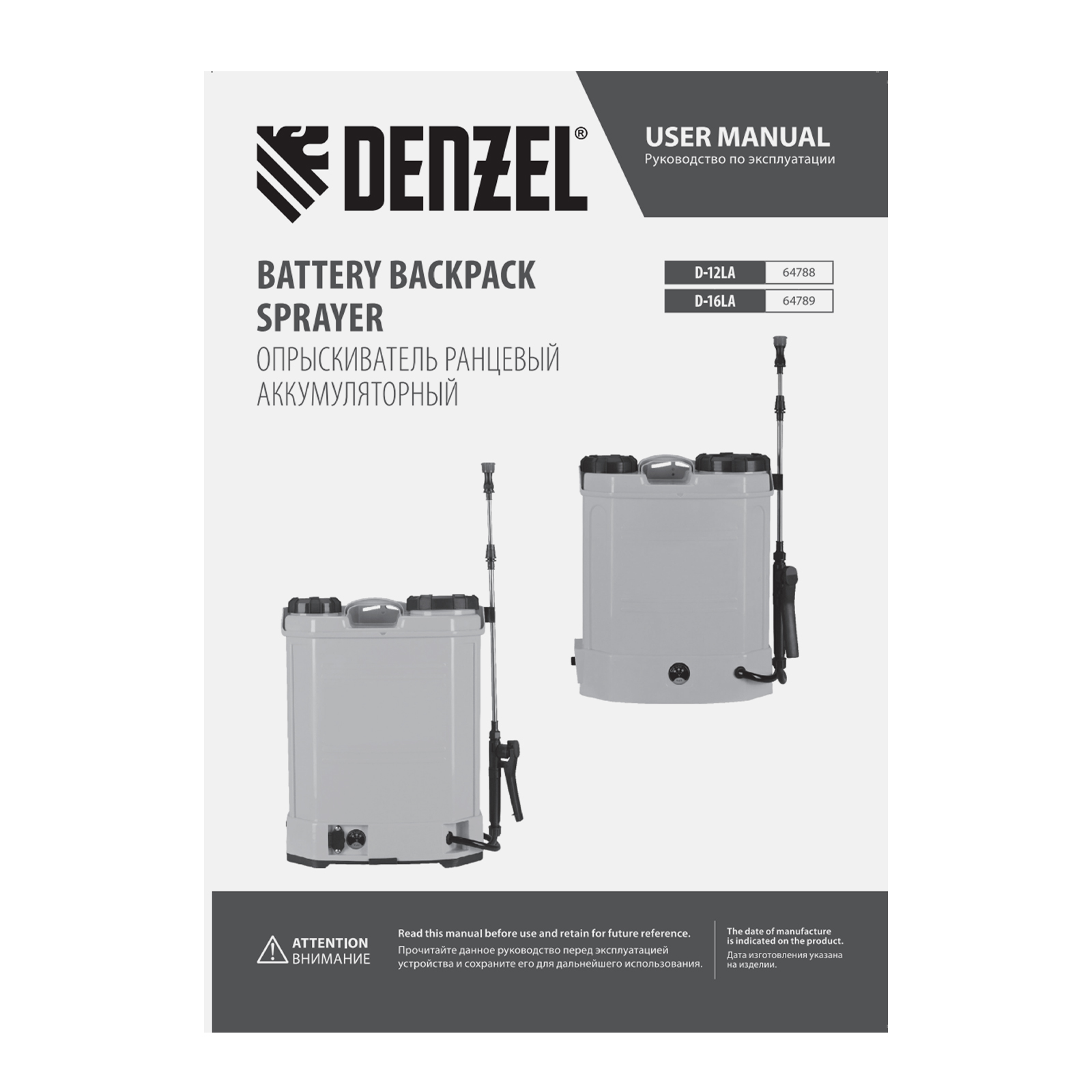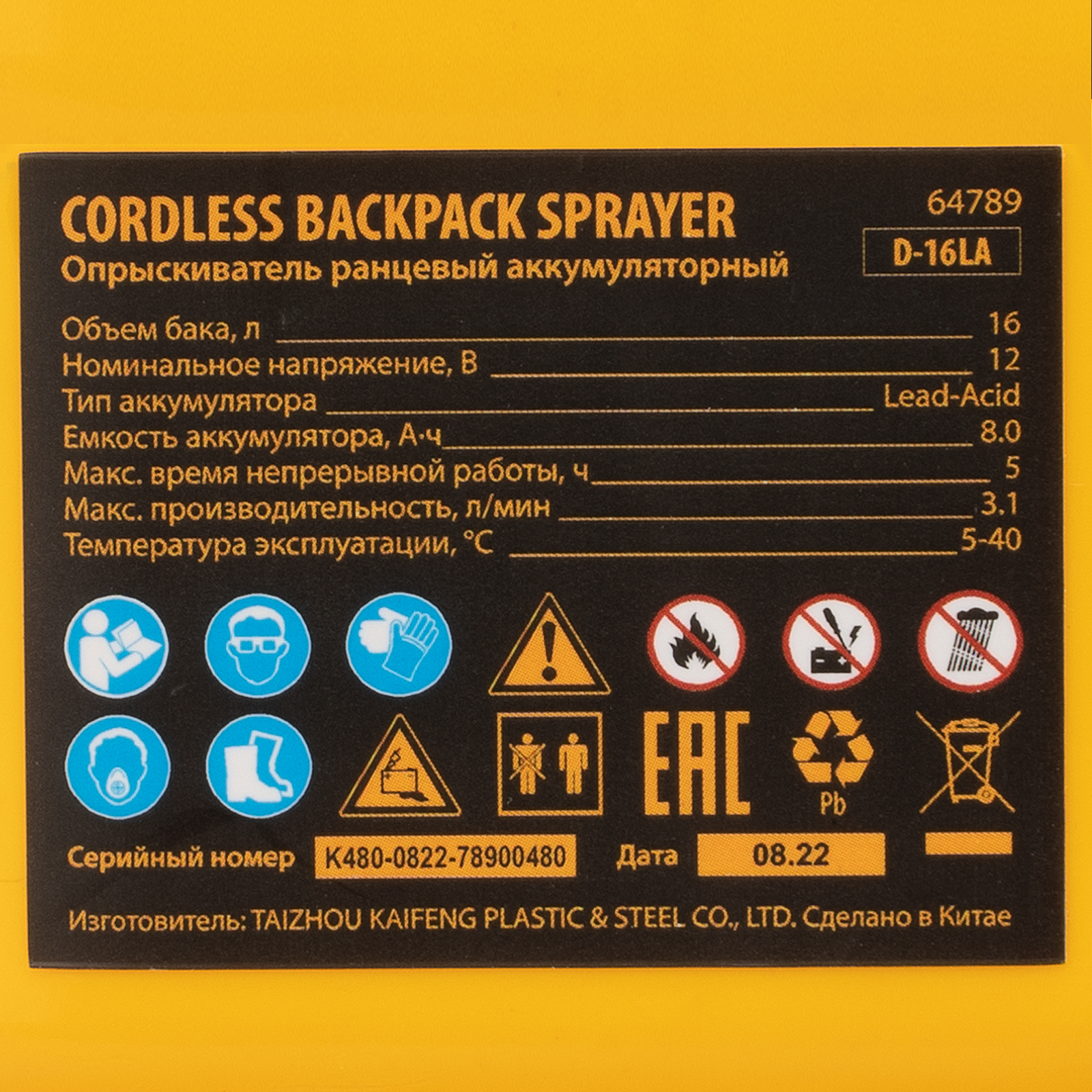 Опрыскиватель ранцевый аккумуляторный D-16LA, 16 л, 12 В, 8 Ач Denzel в Челябинске