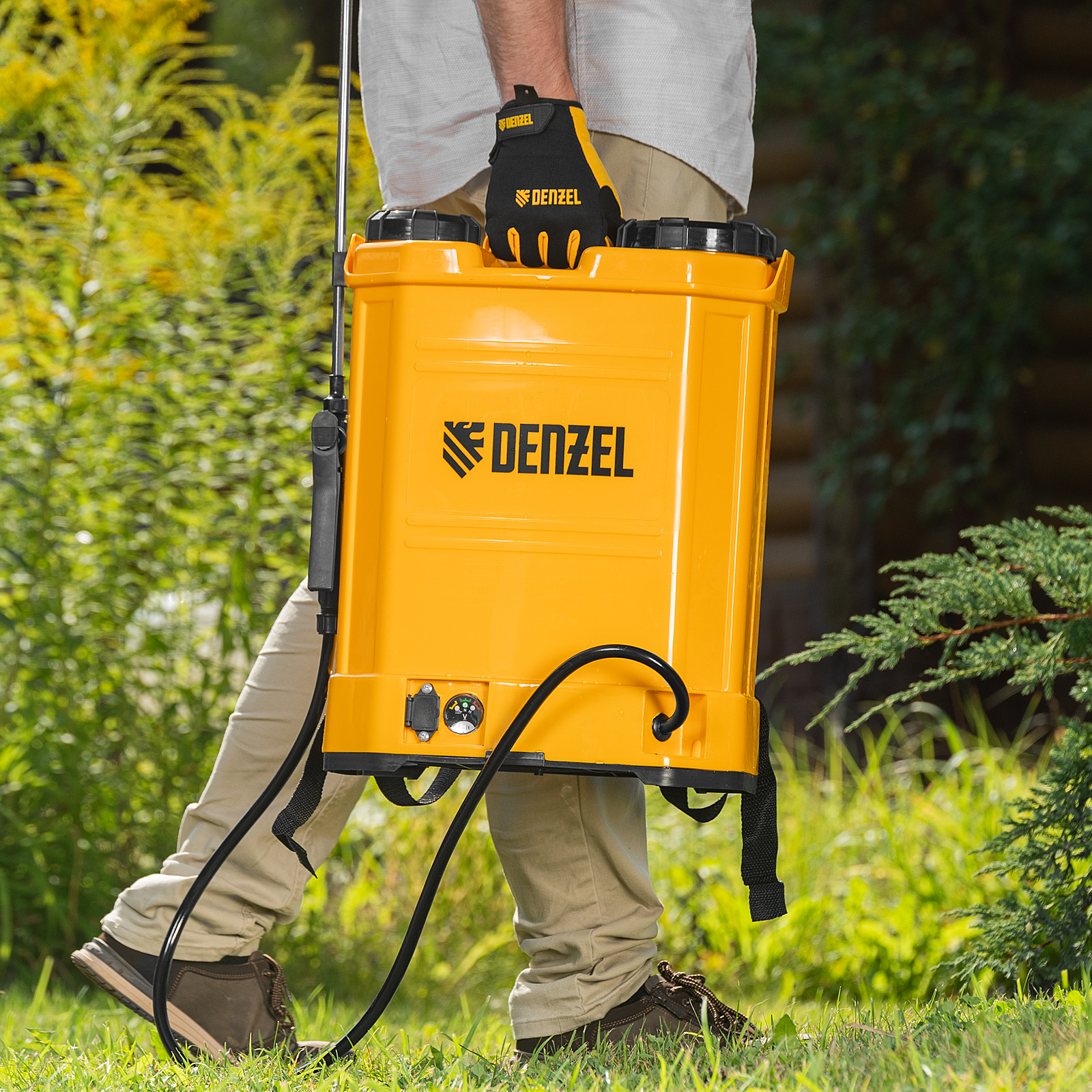 - Удобное перемещение — плечевые ремни с мягкими накладками равномерно распределяют вес опрыскивателя, снижая нагрузку на спину.