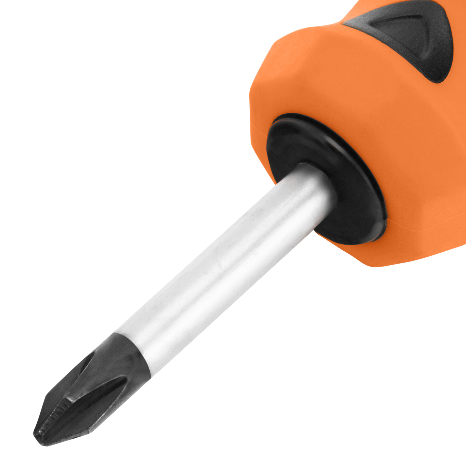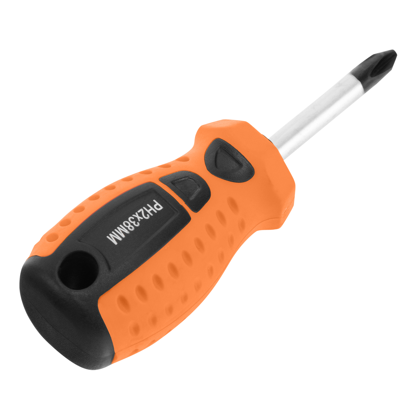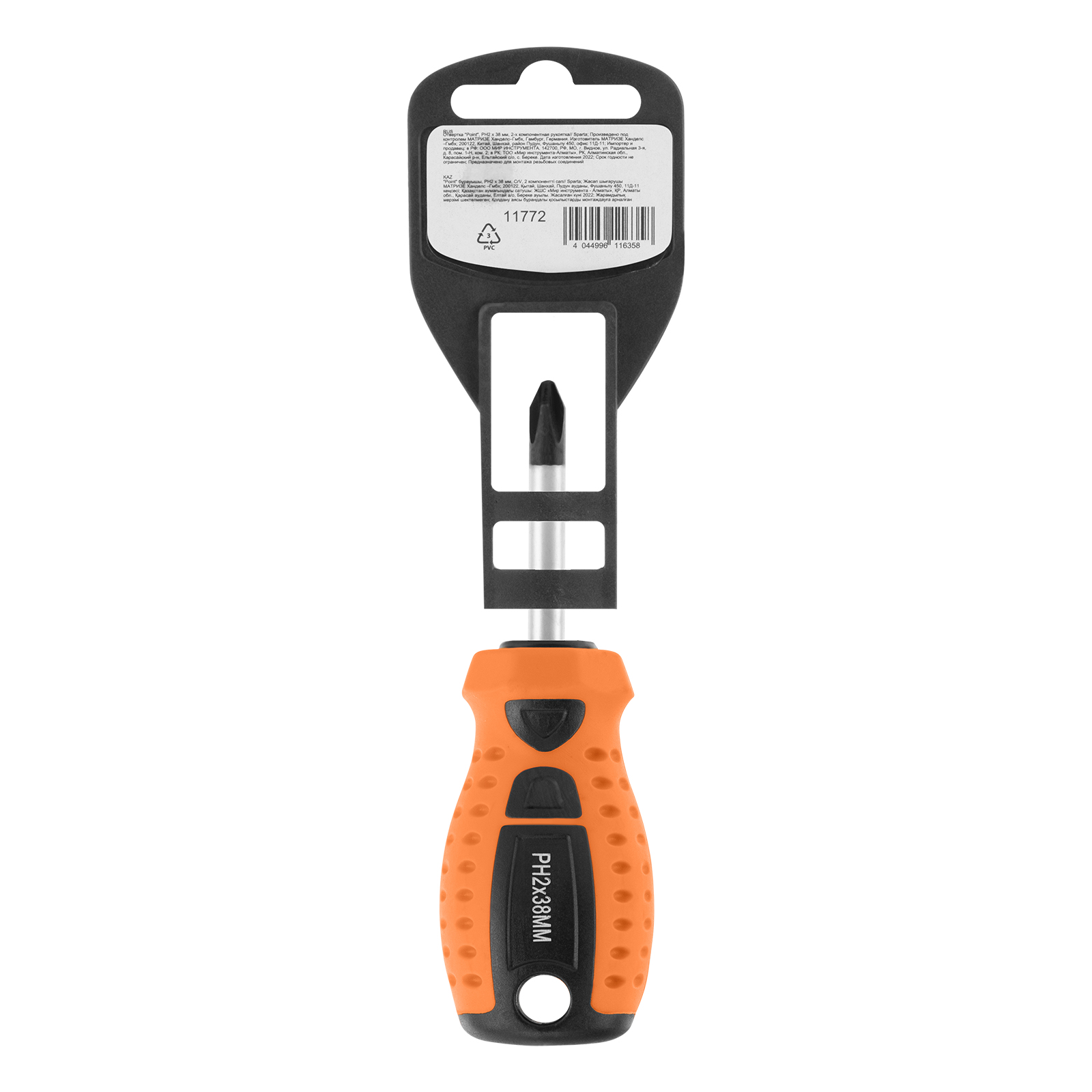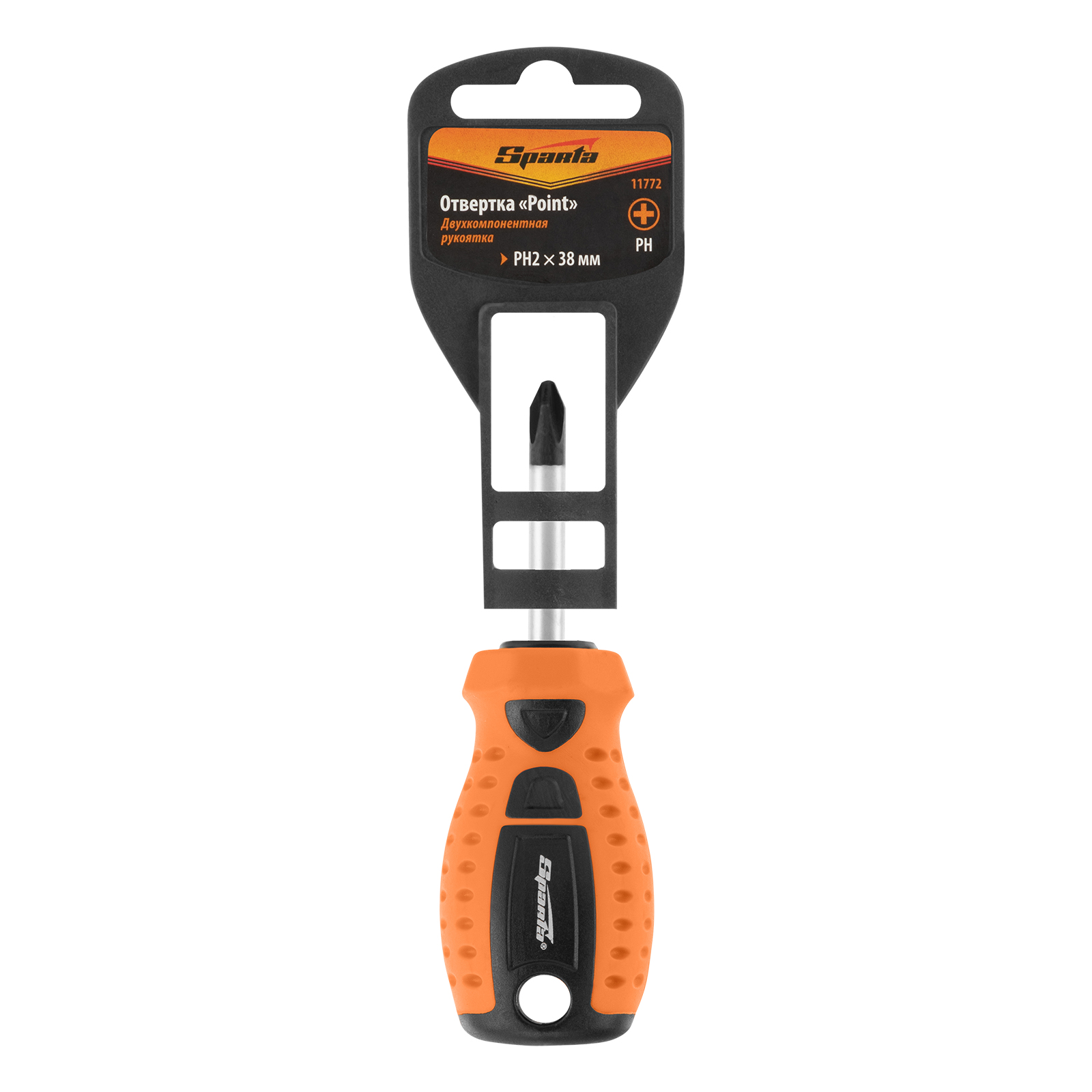 Отвертка Sparta «Point» 11772, из стали CrV, с 2-х компонентной рукояткой, подходит для монтажа/демонтажа крестового крепежа PH2. Она поможет мастерам провести мелкие бытовые работы в доме или автомастерской. Отвертка оснащена укороченным стержнем 38 мм для удобства работы в труднодоступных местах.