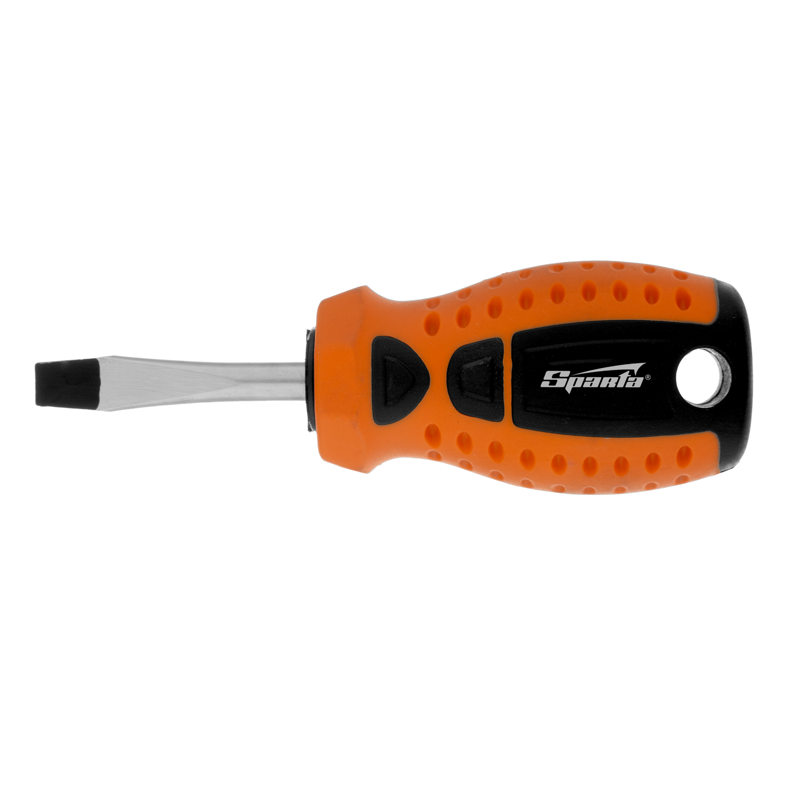Отвертка Sparta «Point» 11751 из стали CrV, с 2-х компонентной рукояткой, рассчитана на бытовое применение для работ с крепежом типоразмера SL6. Она пригодится мастерам при осуществлении мелких ремонтных работ. Укороченный стержень длиной 38 мм повышает удобство работы в труднодоступных местах, что особенно актуально в автомастерской.