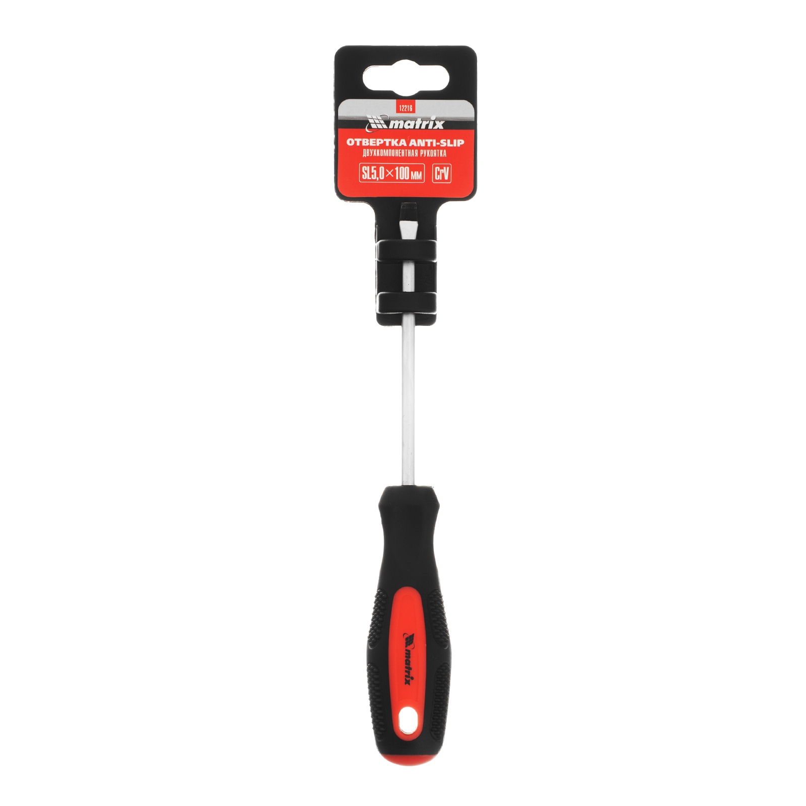 Отвертка Anti-Slip, SL5 х 100 мм, CrV, двухкомпонентная рукоятка Matrix в Челябинске