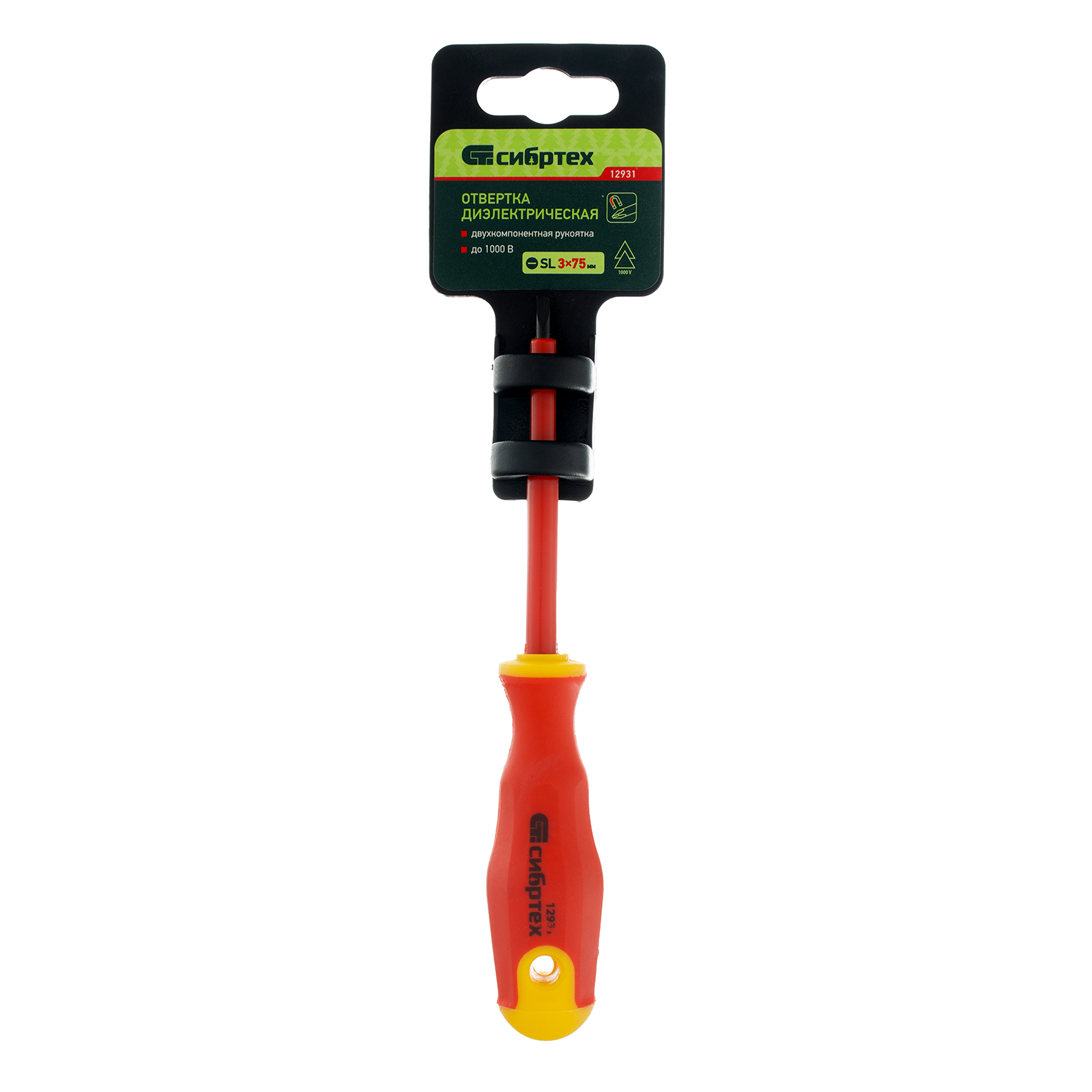 Отвертка диэлектрическая SL3 х 75 мм, CrV, до 1000 В, двухкомпонентная рукоятка Сибртех в Челябинске