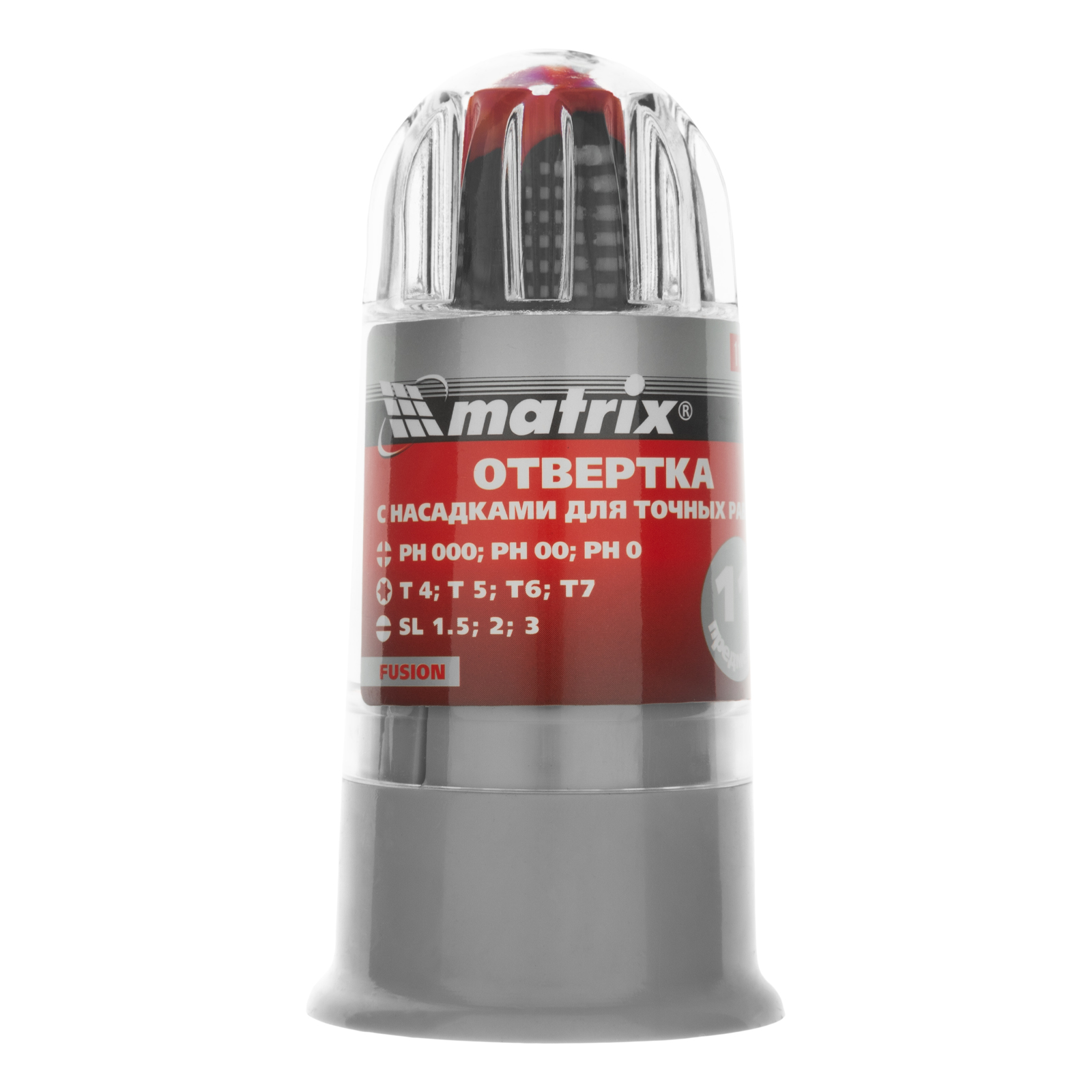 Отвертка для точных работ Fusion с насадками, 11 предметов, в пластиковом пенале, трехкомпонентная рукоятка Matrix в Челябинске
