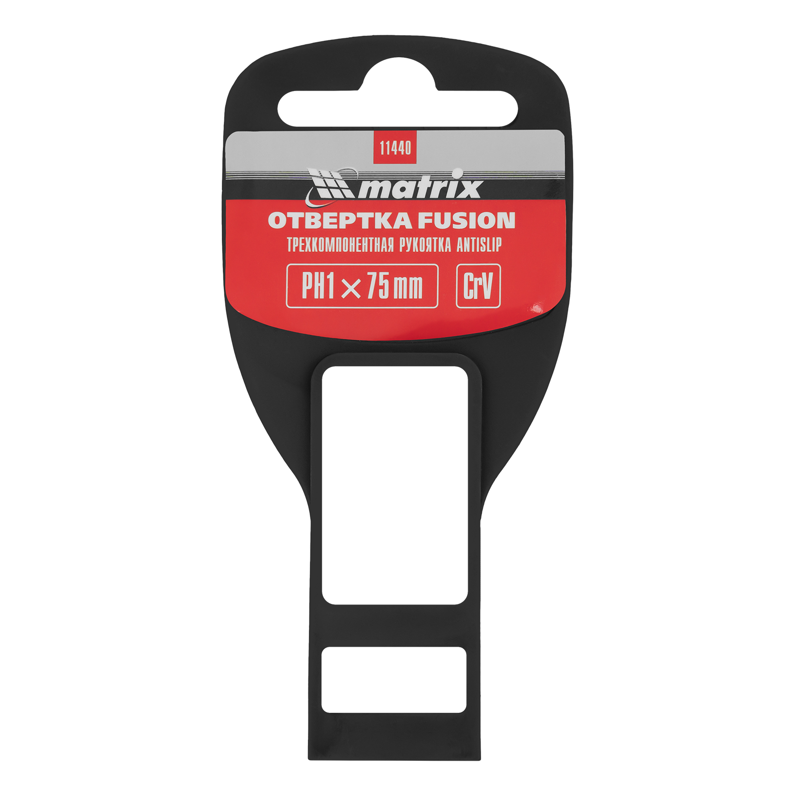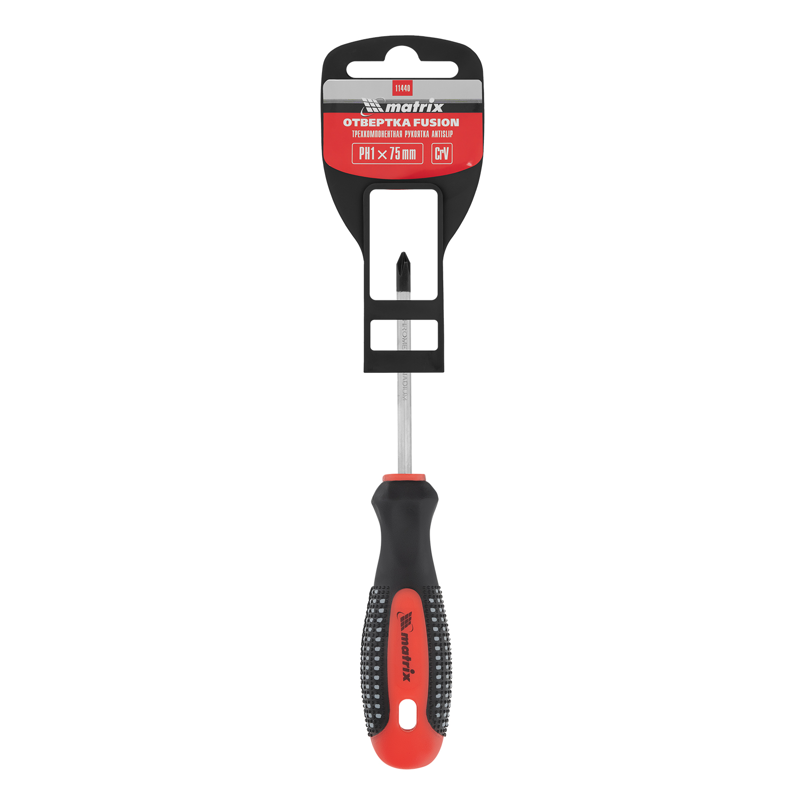 Отвертка Fusion, PH1 х 75 мм, CrV, трехкомпонентная рукоятка "Anti slip" Matrix в Челябинске