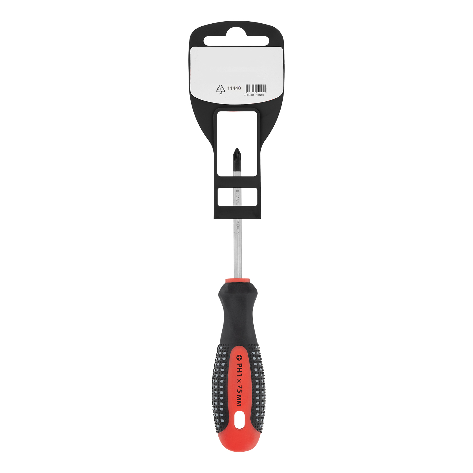 Отвертка Matrix Fusion 11440, PH1 х 75 мм, из стали CrV, с 3-х компонентной рукояткой «anti slip», предназначена для работ с резьбовым крепежом, имеющим крестообразный шлиц Phillips. Профессиональная отвертка пригодится при выполнении строительных, монтажных и ремонтных работ, а также при сборке мебели и ремонте автомобиля. Длина стержня 75 мм позволяет работать с крепежом, расположенным на поверхностях и в углублениях.
