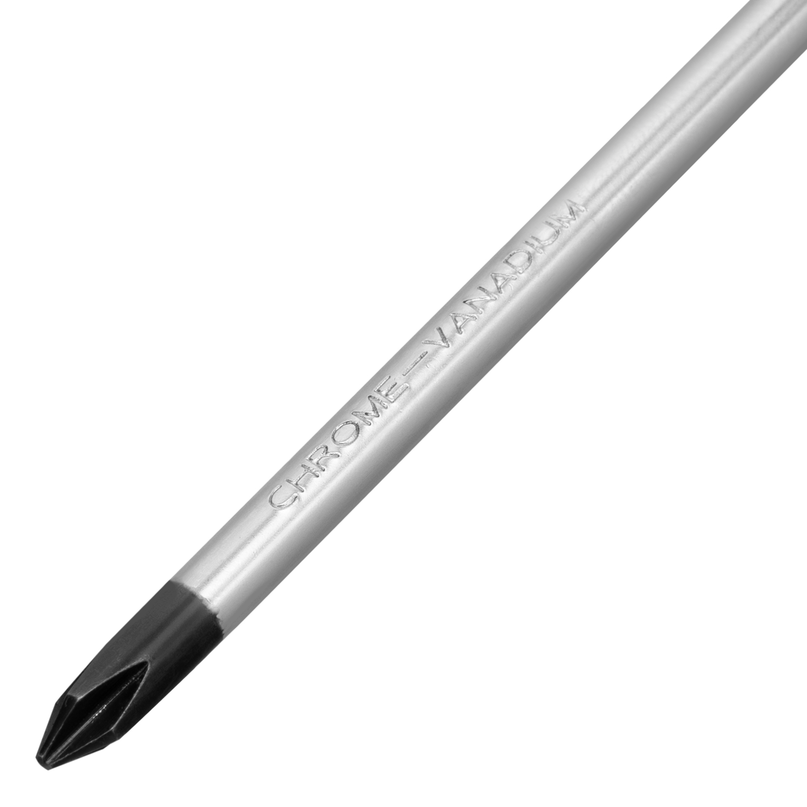- Стержень и жало выполнены из износостойкой легированной стали CrV твердостью 50-52 HRC, что обеспечивает долгий срок службы отвертки.