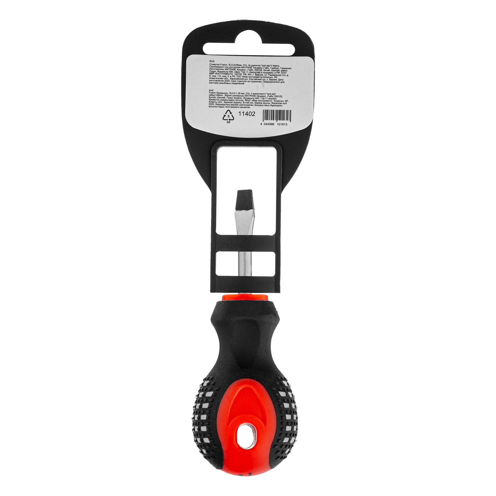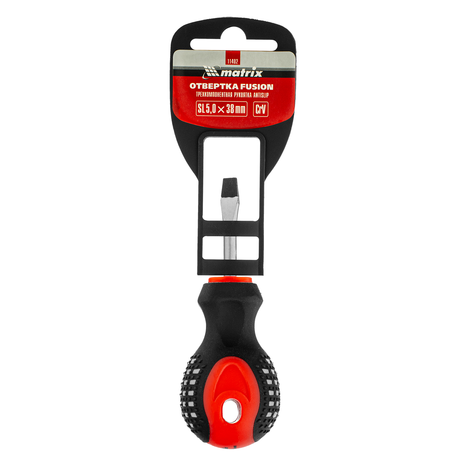 Отвертка Fusion, SL5 х 38 мм, CrV, трехкомпонентная рукоятка "Anti slip" Matrix в Челябинске