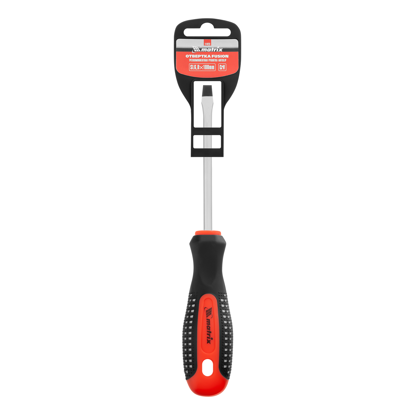 Отвертка Fusion, SL6 х 100 мм, CrV, трехкомпонентная рукоятка "Anti slip" Matrix в Челябинске