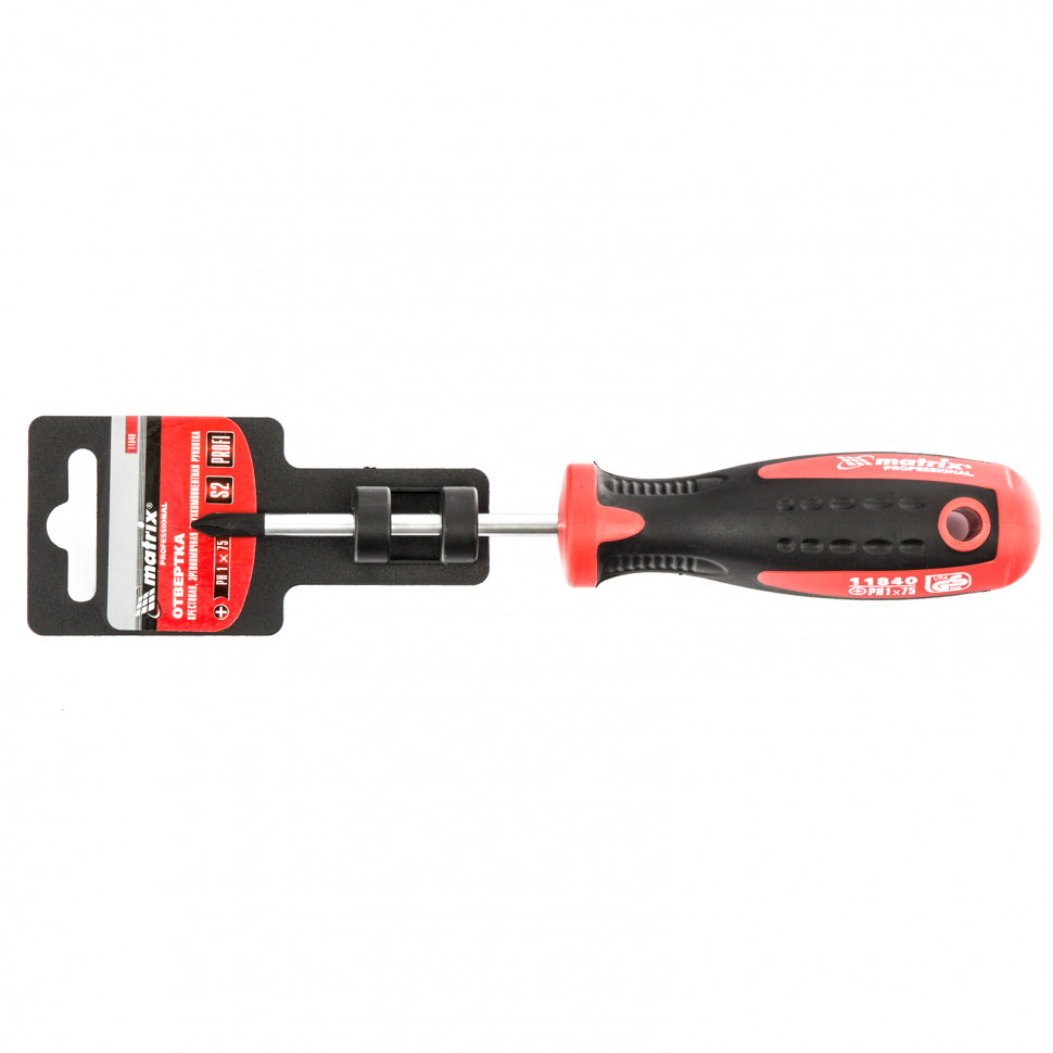 Отвертка Profi, PH1 х 75 мм, S2, двухкомпонентная рукоятка Matrix в Челябинске