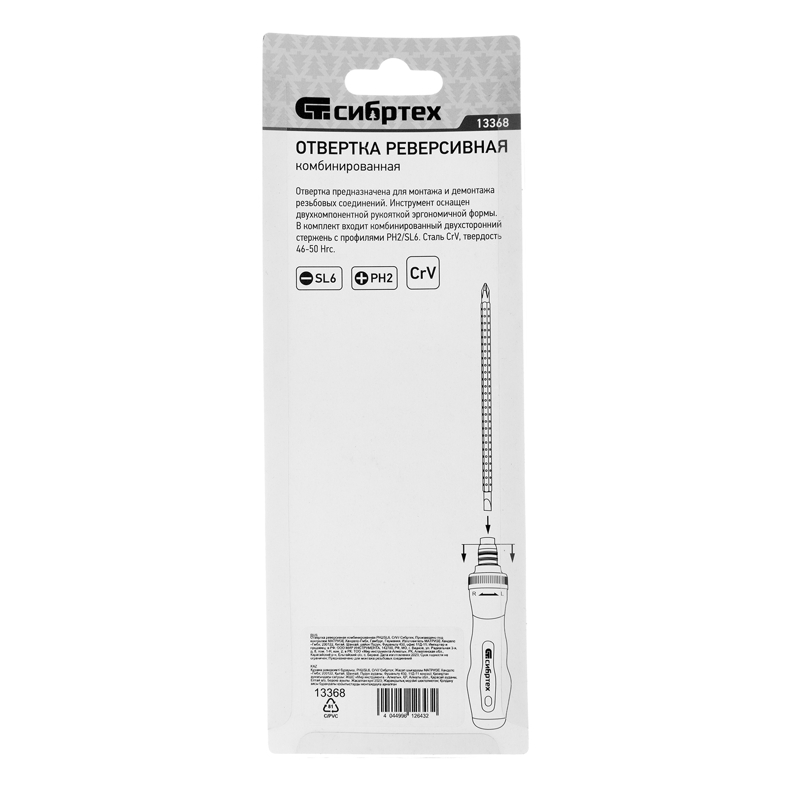 Отвертка реверсивная комбинированная PH2/SL6, CrV Сибртех в Челябинске