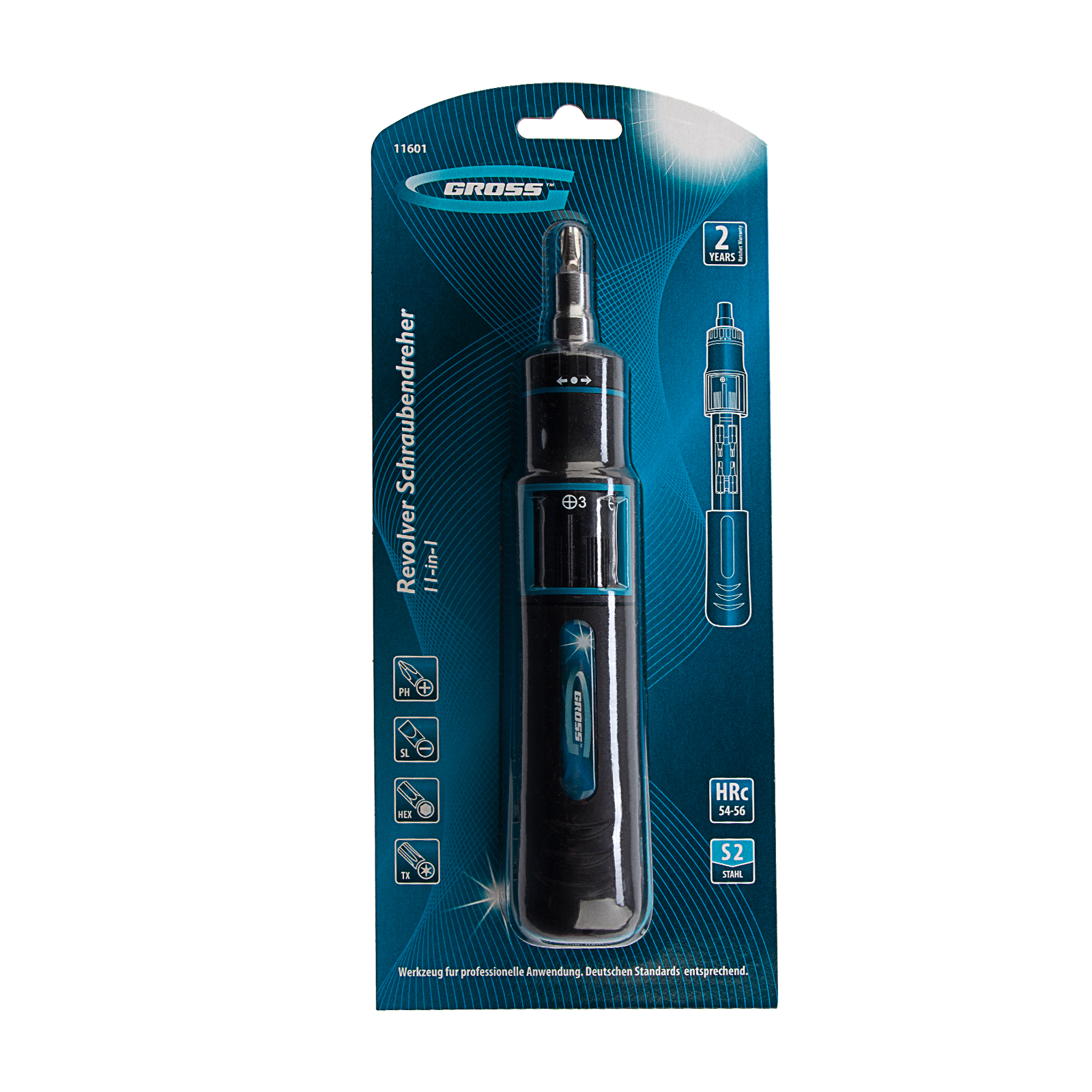 Отвертка реверсивная с револьверным механизмом, 11 шт, сталь S2 Gross в Челябинске