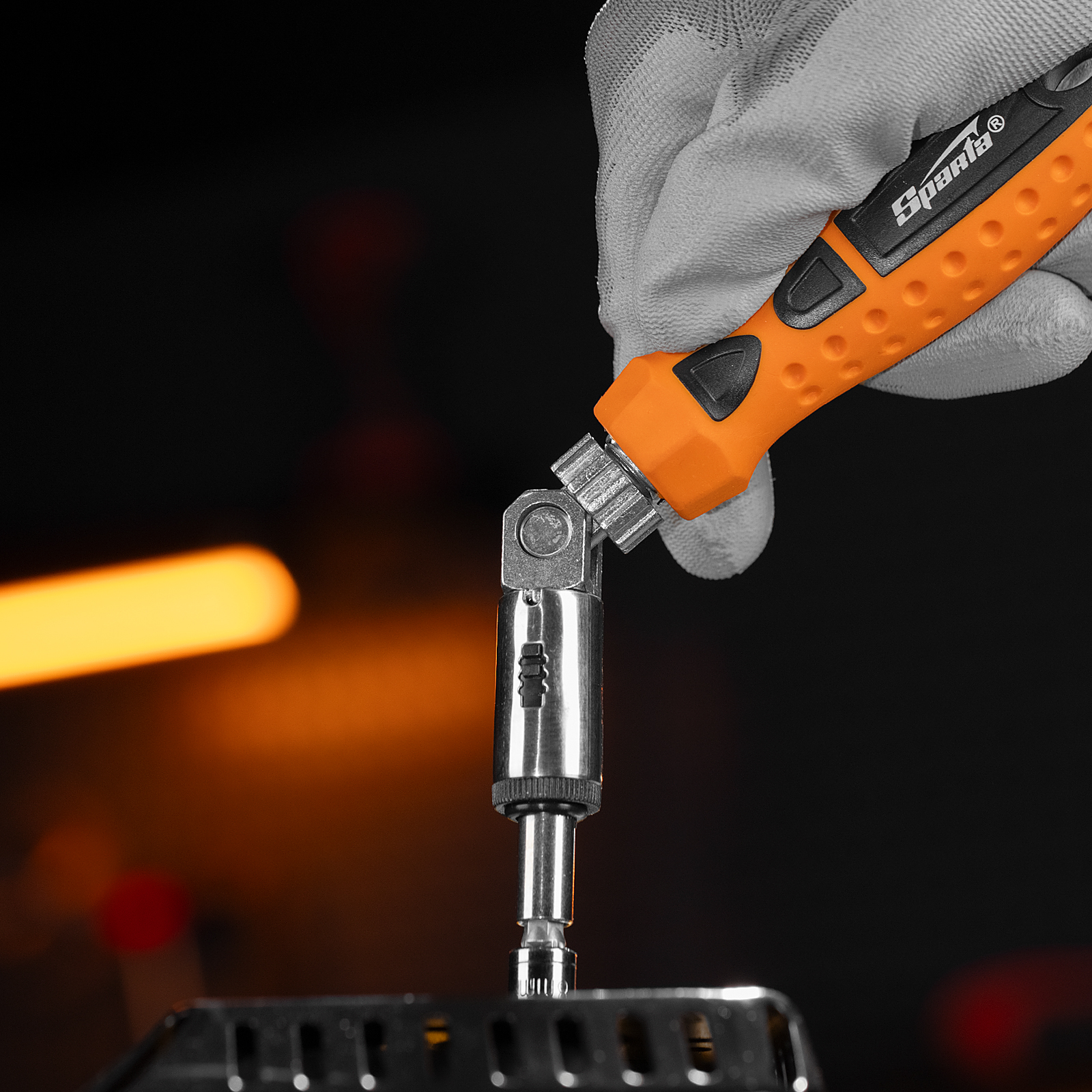 - Поворотная голова с пятипозиционной фиксацией обеспечивает возможность работы в труднодоступных местах и ограниченном пространстве.