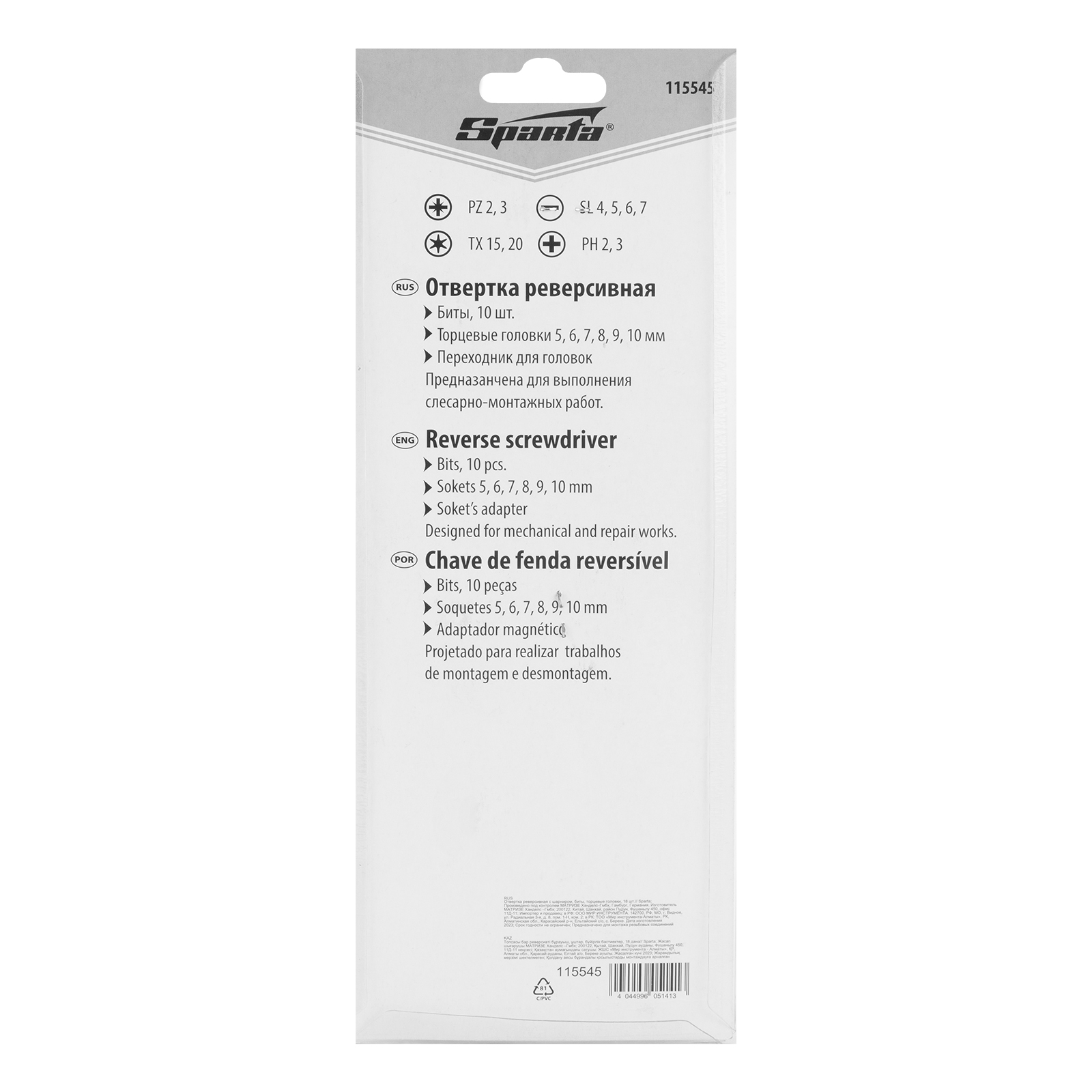 Реверсивная отвертка с шарниром Sparta 115545 входит в набор из 18 предметов, включающий также биты с хвостовиком 1/4 дюйма (тип С), торцевые головки и переходник для торцевых головок. Инструмент с насадками применяется для быстрого и эффективного монтажа/демонтажа резьбовых соединений. Реверсивный механизм значительно облегчает работу и снижает усталость рук, т.к. не требуется постоянно перехватывать ручку отвертки. С отверткой можно использовать любые биты длиной 25 мм. Комплект пригодится частным мастерам при проведении ремонтных работ.