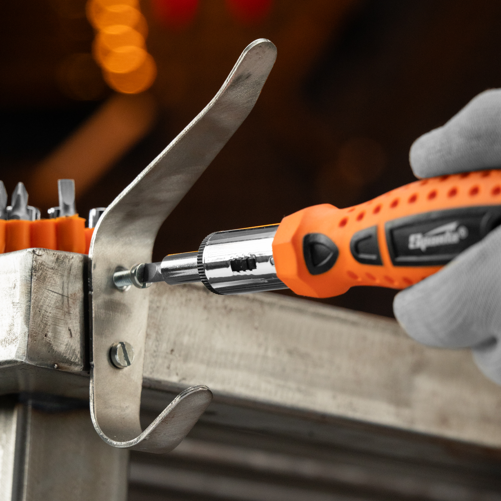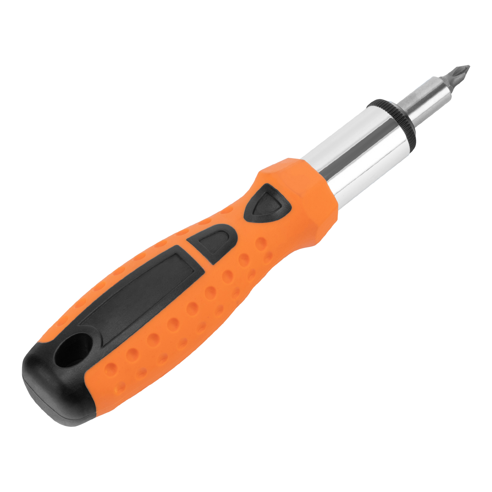 Реверсивная отвертка с шарниром Sparta 115565 входит в набор из 14 предметов, включающий также биты с хвостовиком 1/4 дюйма (тип С), торцевые головки и переходник для торцевых головок. Инструмент с насадками применяется для быстрого и эффективного монтажа/демонтажа резьбовых соединений. Реверсивный механизм значительно облегчает работу и снижает усталость рук, т.к. не требуется постоянно перехватывать ручку отвертки. С отверткой можно использовать любые биты длиной 25 мм. Комплект пригодится частным мастерам при проведении ремонтных работ.