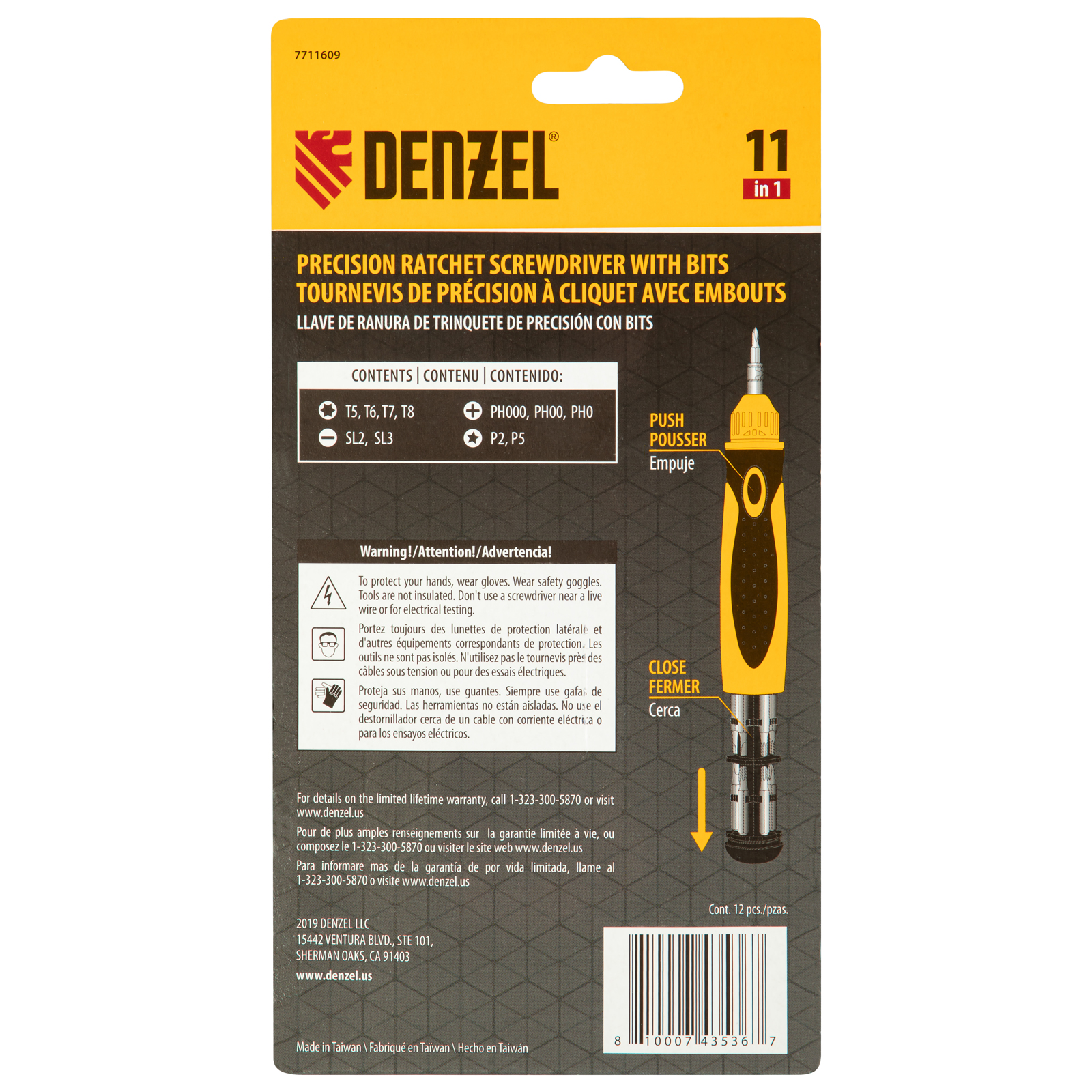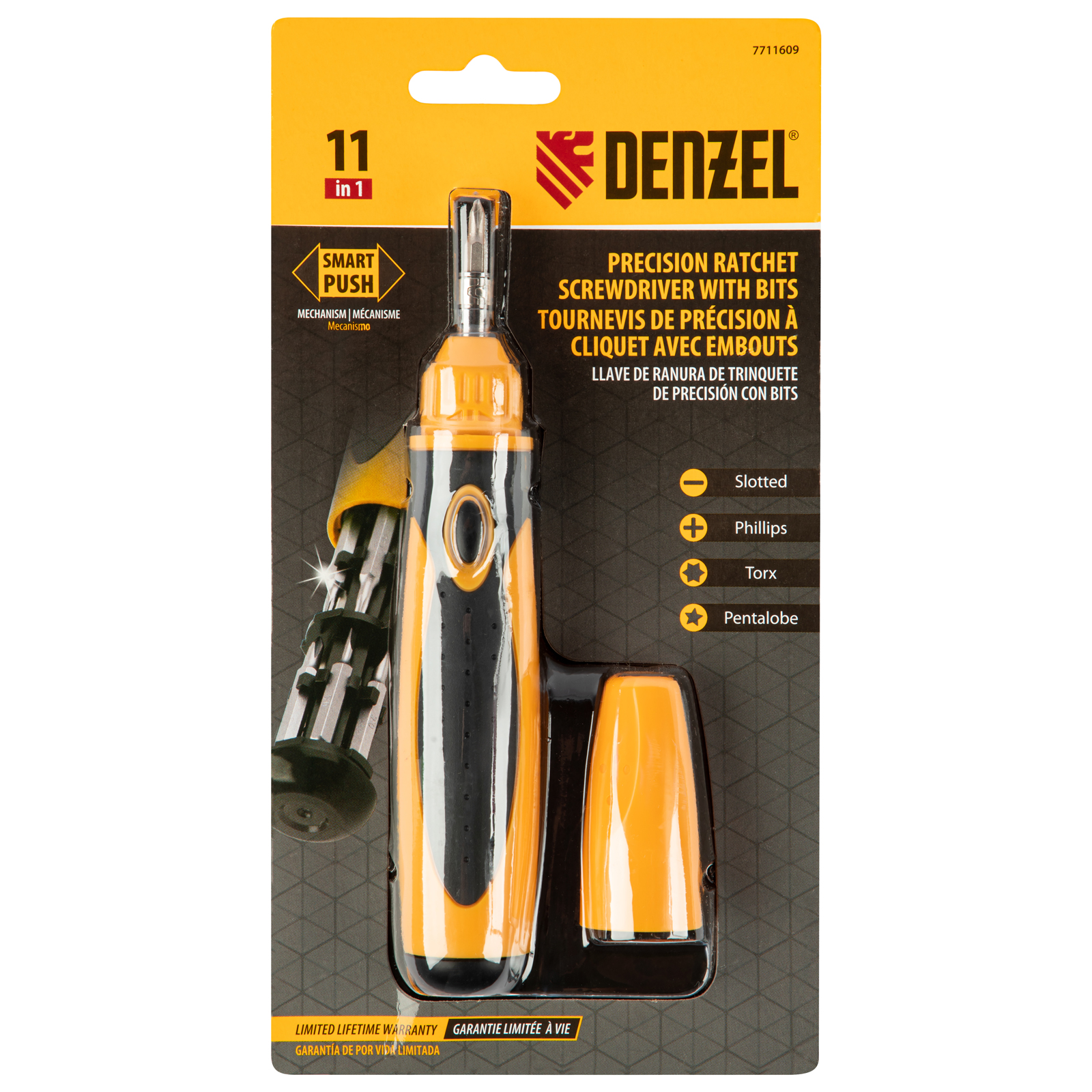 Отвертка реверсивная, механизм SmartPush mini 11 шт, CrMo Denzel в Челябинске