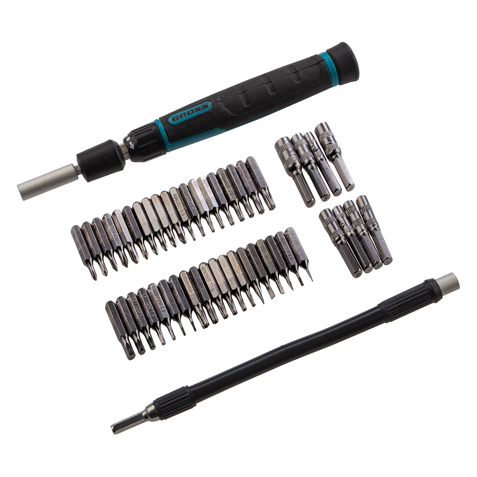 Отвертка с набором бит и торцевых головок для точных работ, гибкий привод, 48 шт, CrMo Gross в Челябинске