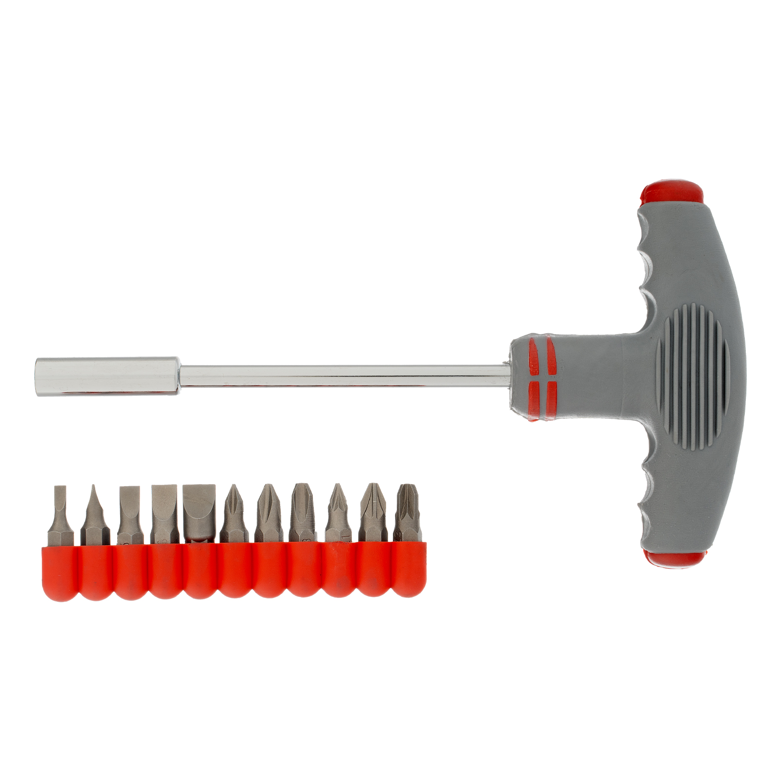 Отвертка с Т-образной эргономичной ручкой и набором бит, 11 шт, CrV Matrix в Челябинске