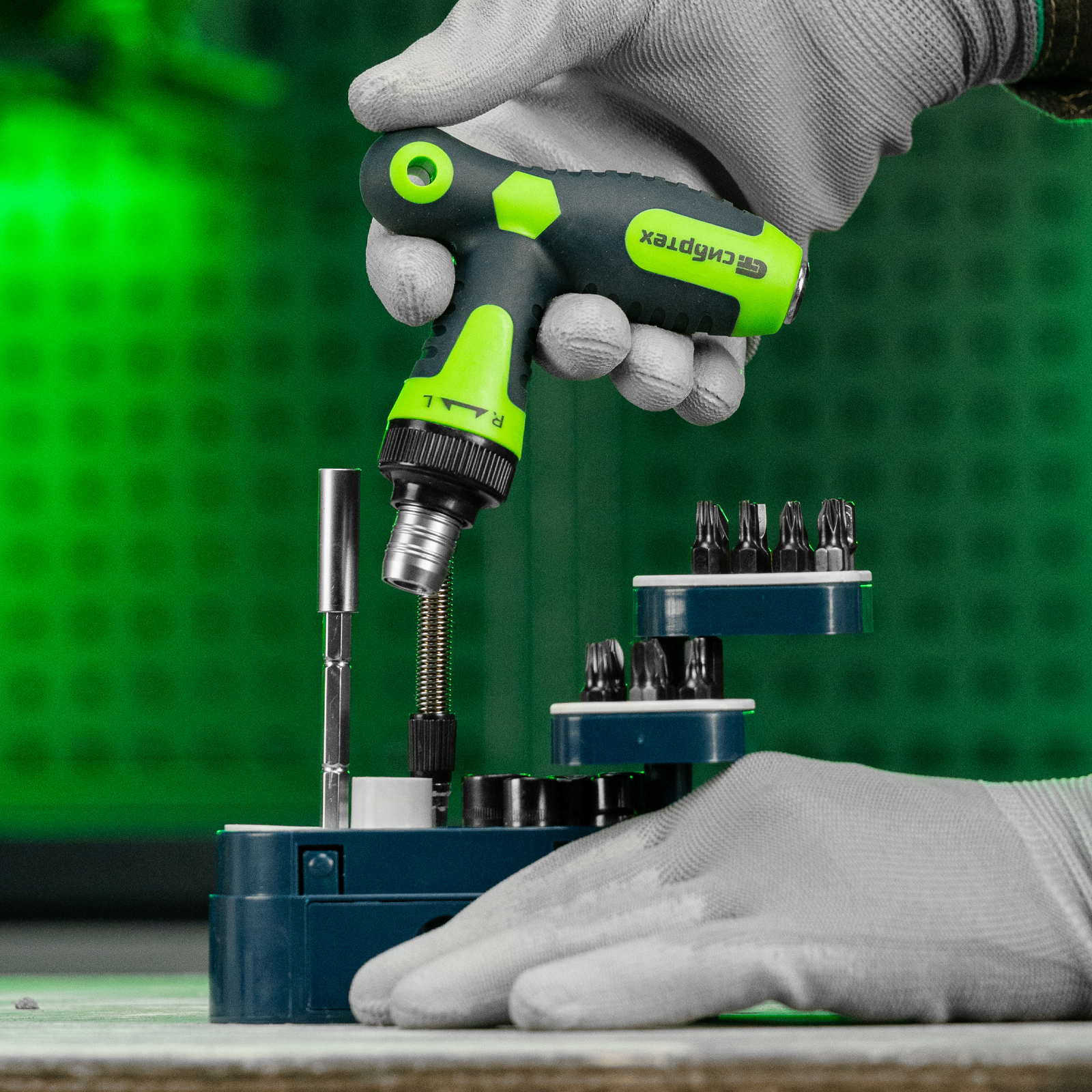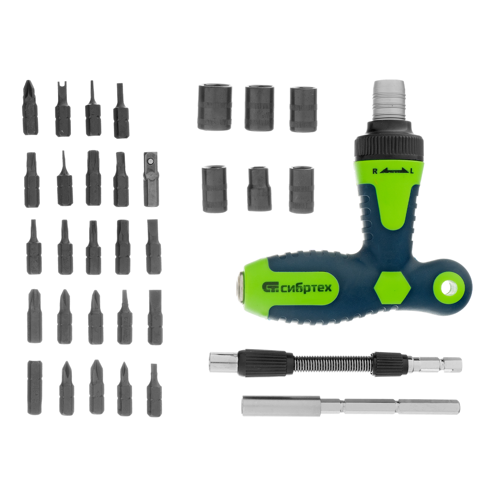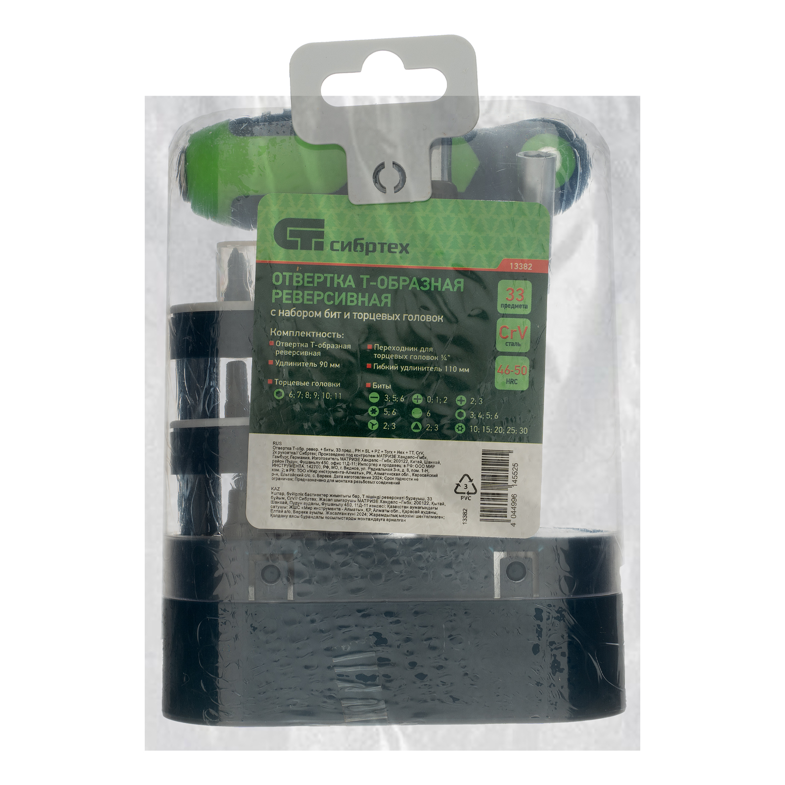 Отвертка Т-образная реверсивная с набором бит, торцевых головок, 33 предмета, CrV Сибртех в Челябинске