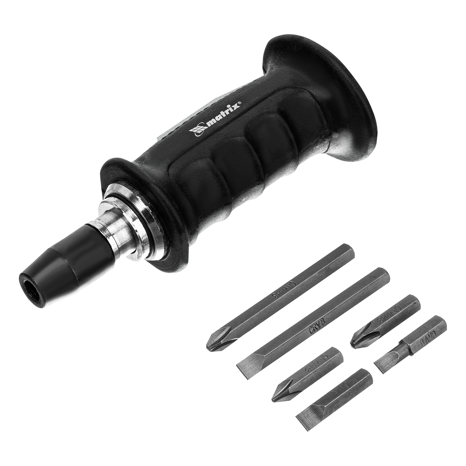 Отвертка ударно-поворотная 1/2, набор бит, 6 шт, черная ручка Профи, пластиковый бокс Matrix в Челябинске