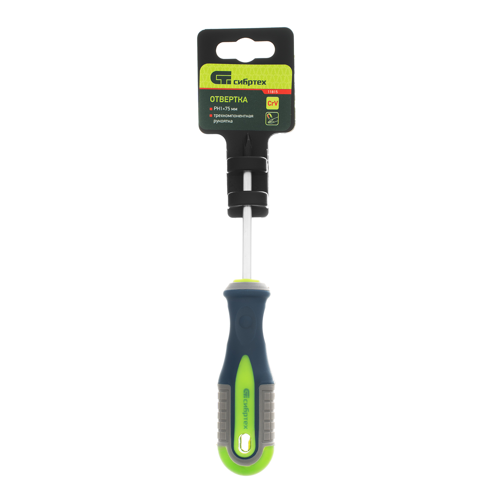 Отвертка Сибртех 11815, PH1 х 75 мм, из стали CrV, с 3-х компонентной рукояткой, пригодится частным мастерам для монтажа/демонтажа крепежных элементов типоразмера PH1. Она поможет произвести ремонтные и монтажные работы дома, в гараже, на даче. Благодаря стержню длиной 75 мм отверткой можно работать в углублениях.